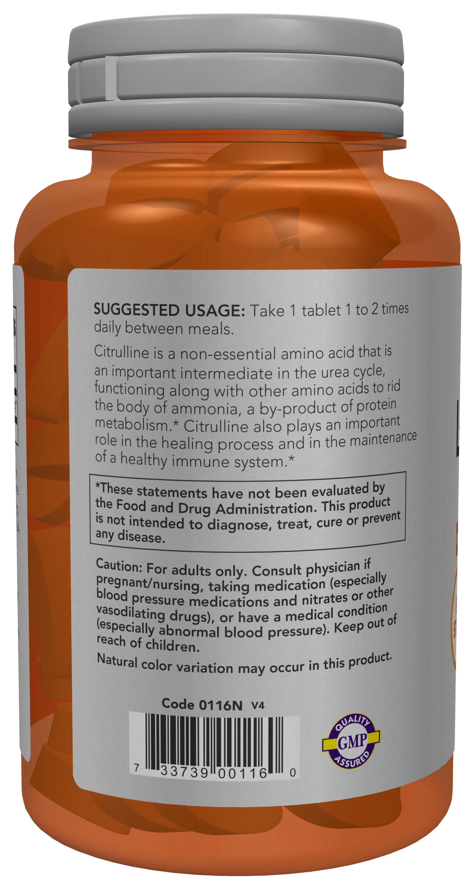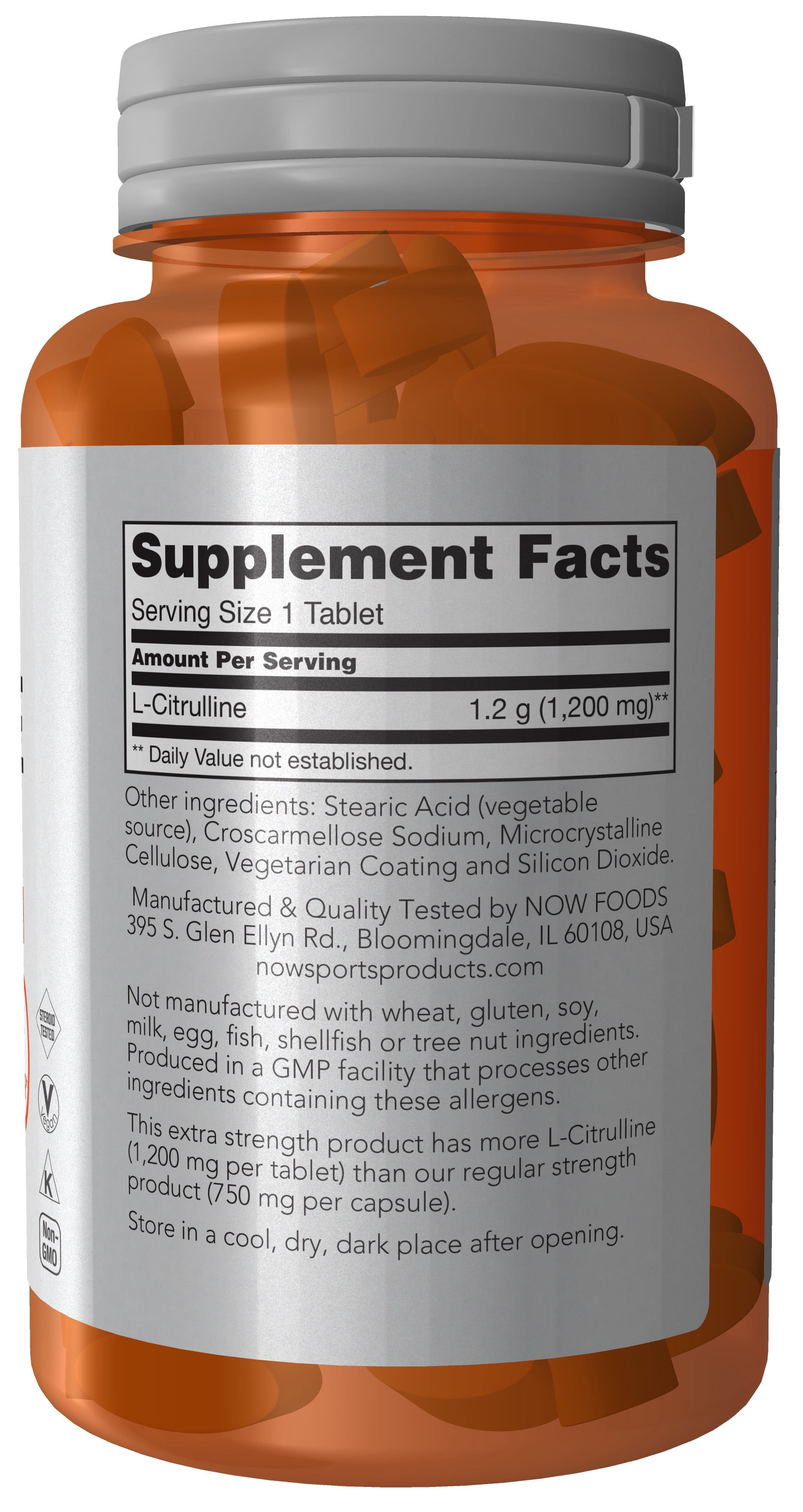 - EXTRA STRENGTH: This extra strength NOW® Sports product has more citrulline (1,200 mg per tablet) than our regular strength product (750 mg per capsule).