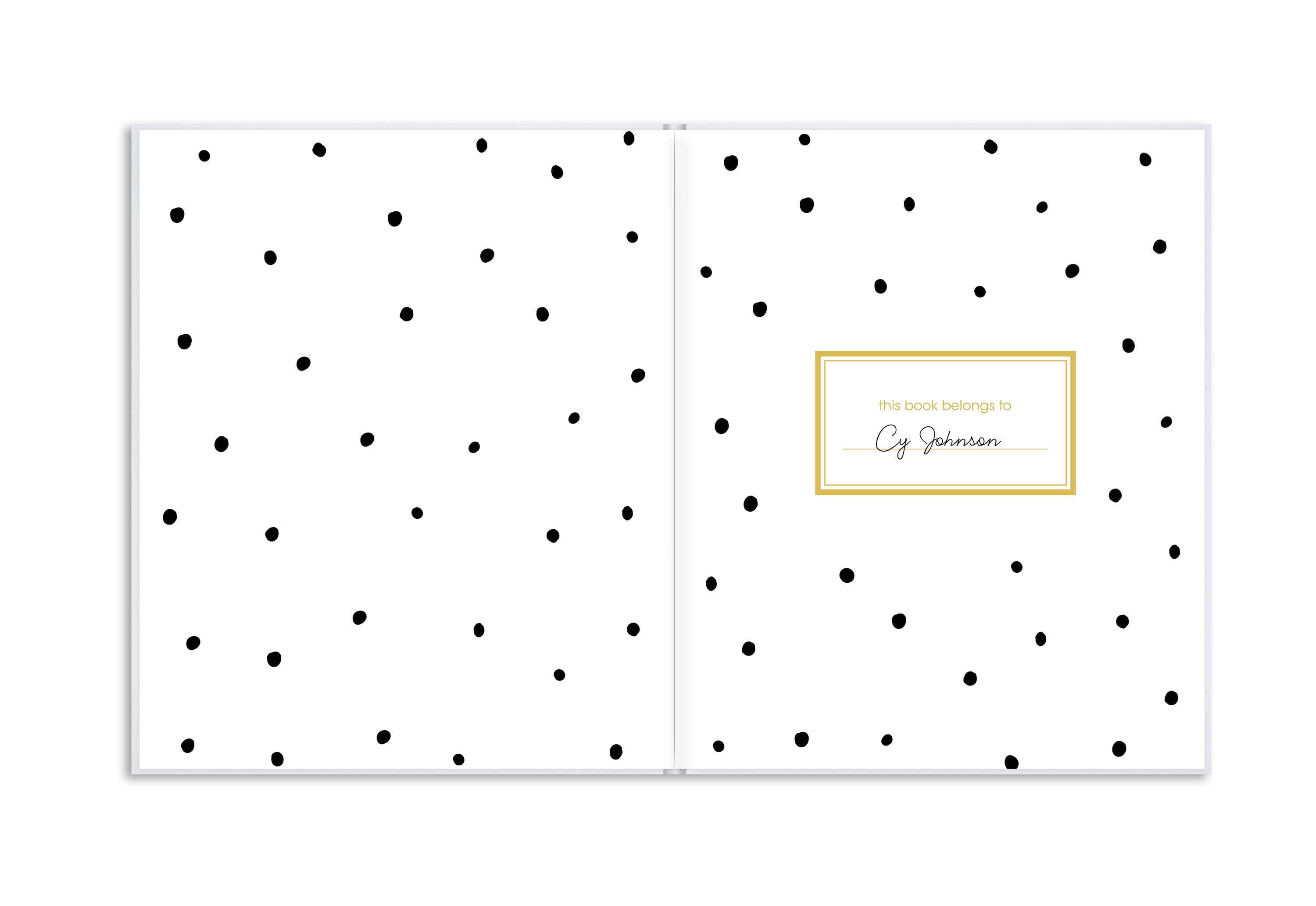 - Black and white baby book with gold foil accents add modern and stylish touch “hello baby” and trendy arrow design stamped in gold foil on front of baby book