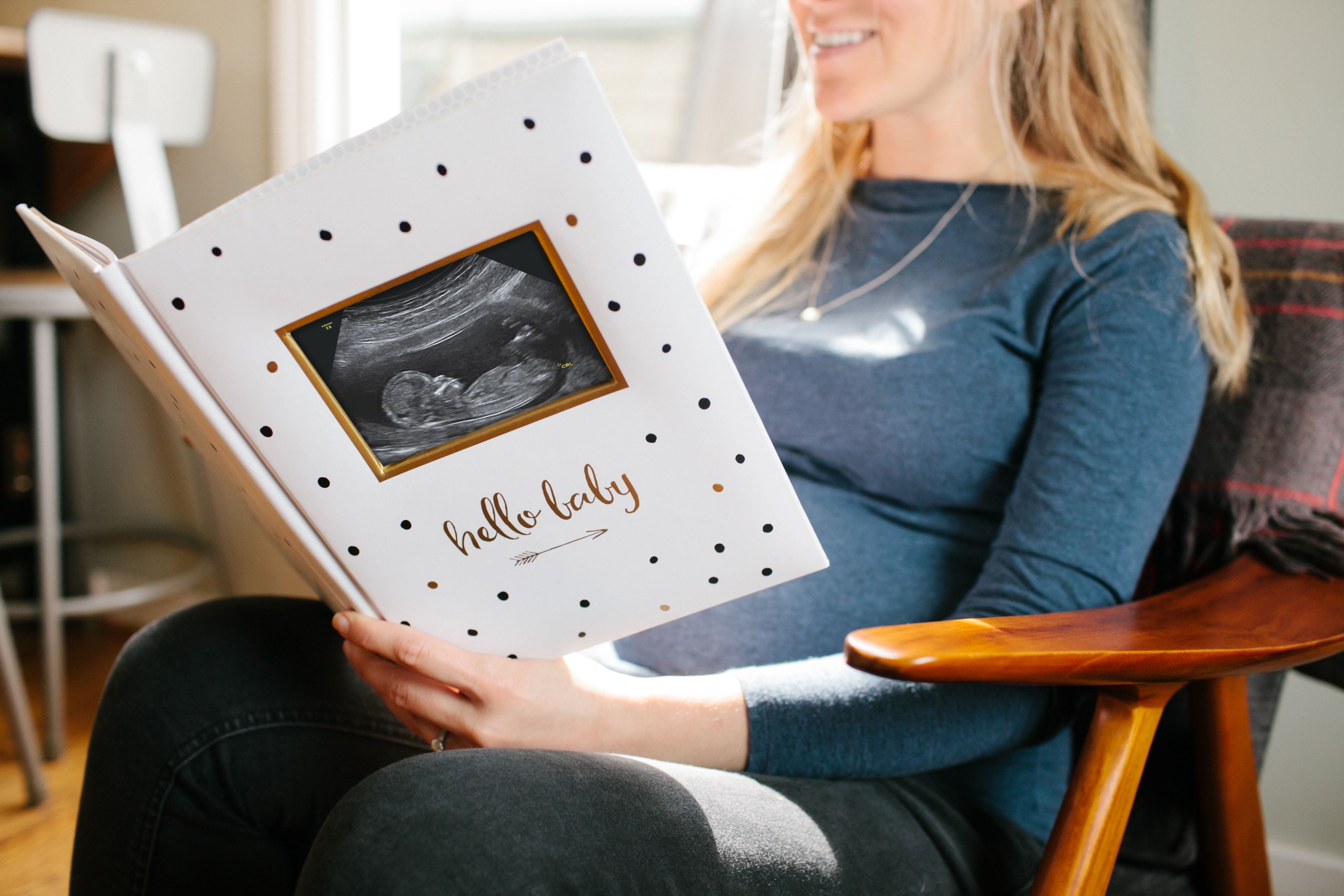 Say hello baby with Pearhead’s baby book. This modern, black and white baby book includes 48 fill-in journal pages to record all of baby’s moments from their birth to their first days of school. Display baby’s sonogram photo on the front cover of this stylish baby book. White, black, and gold foil colors decorate the front of this baby book with “hello baby” and a modern arrow design stamped in gold foil. The inside pages of the baby book include space for photos, artwork, birthday memories, school keepsakes, and more. This baby book also includes an area to fill in your family tree and information about mommy and daddy. Pearhead’s baby book is the perfect gift for any baby shower!