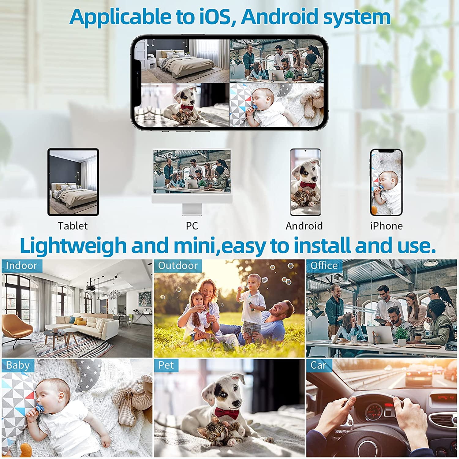 - Mobile APP quickly connect: When the camera power supply is sufficient, you only need to download the relevant APP on your mobile phone, without wiring, you can quickly connect, start recording with one key, and bid farewell to cumbersome. The mobile phone APP can also be remotely watched and monitored without distance limitation, and you can also take the memory card to the computer to watch.