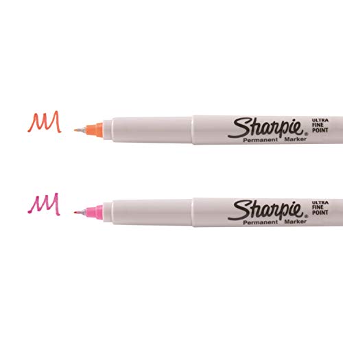 Product Description Sharpie marker pens marks bright, strong and permanent on most surfaces: metal, glass, plastic, foil, cloth, rubber, waxed paper, etc. Great for identifying and labeling. Waterproof ink. Ultra Fine point 24-Set includes: Black, Red, Blue Green, Brown, Purple, Orange, Yellow, Turquoise, Aqua, Lime Green, Cranberry, Navy, Olive, Marigold, Burgundy, Plum, Lilac, Magenta, Pink, Tangerine, Peach, Mint and Sky. From the Manufacturer Sharpie markers allow you to make permanent marks on most hard surface. The point provides a clean, neat writing line. Fade-resistant and water-resistant ink further extends multiple project uses. Quick-drying ink formula is nontoxic and alcohol-based. Colors include black, blue, red, green, yellow, purple, brown, orange, berry, lime, aqua, turquoise, magenta, tangerine, navy, lilac, pink, sky blue, mint, peach, almond, boysenberry, pink lemonade and slate gray.