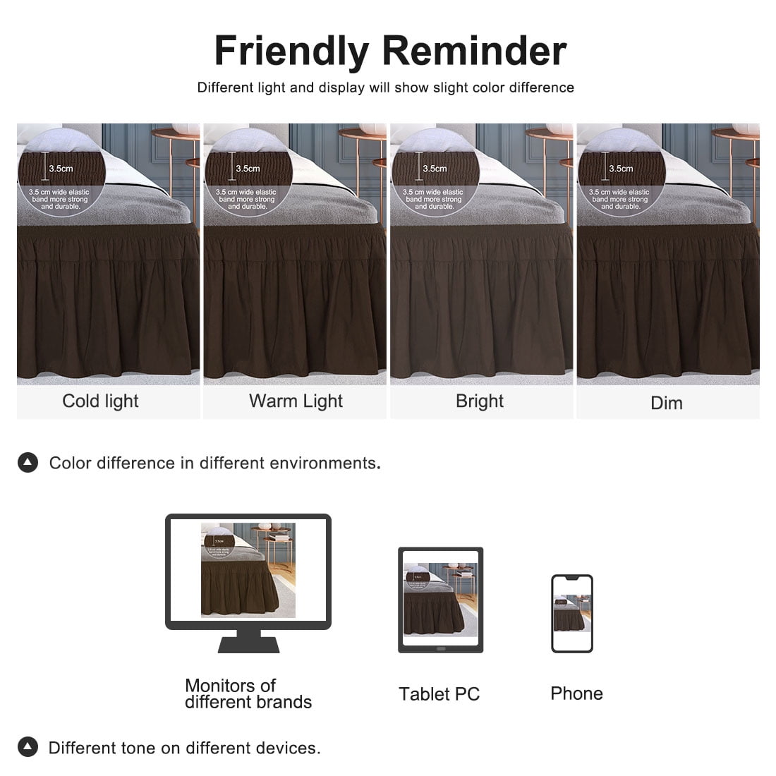 - Uses elastic bands with a width of 3.5 cm make bed skirt easy to put on and take off.