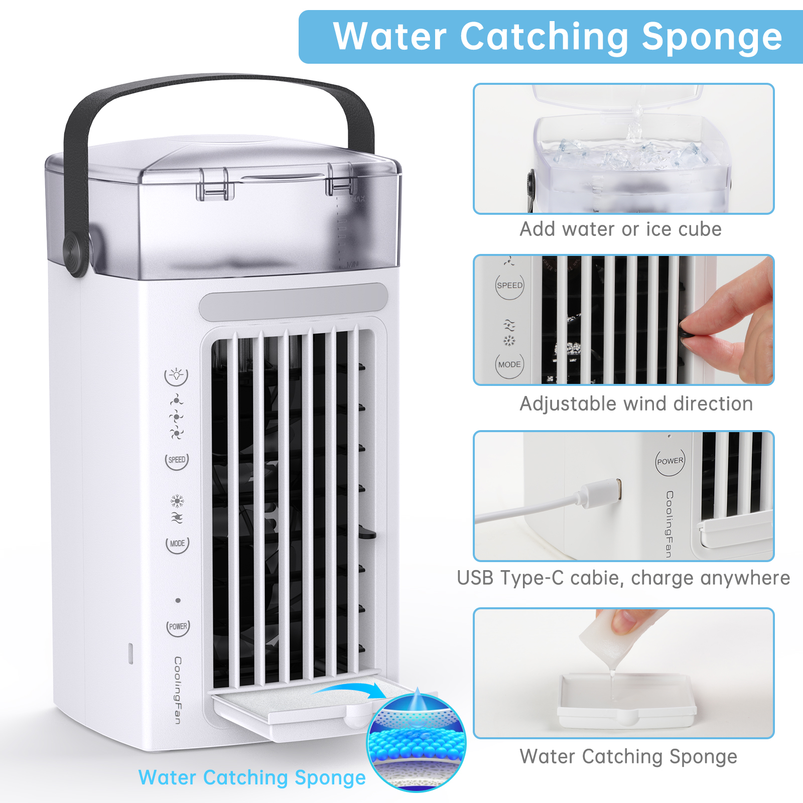 ❄️【Detachable Absorbent Sponge】 There’s a removable black net in the air cooler to absorb peculiar smell and dust air. There’s a water drawer and sponge which designed for collecting the mist water so that you do not have to worry about the water wet your desk.