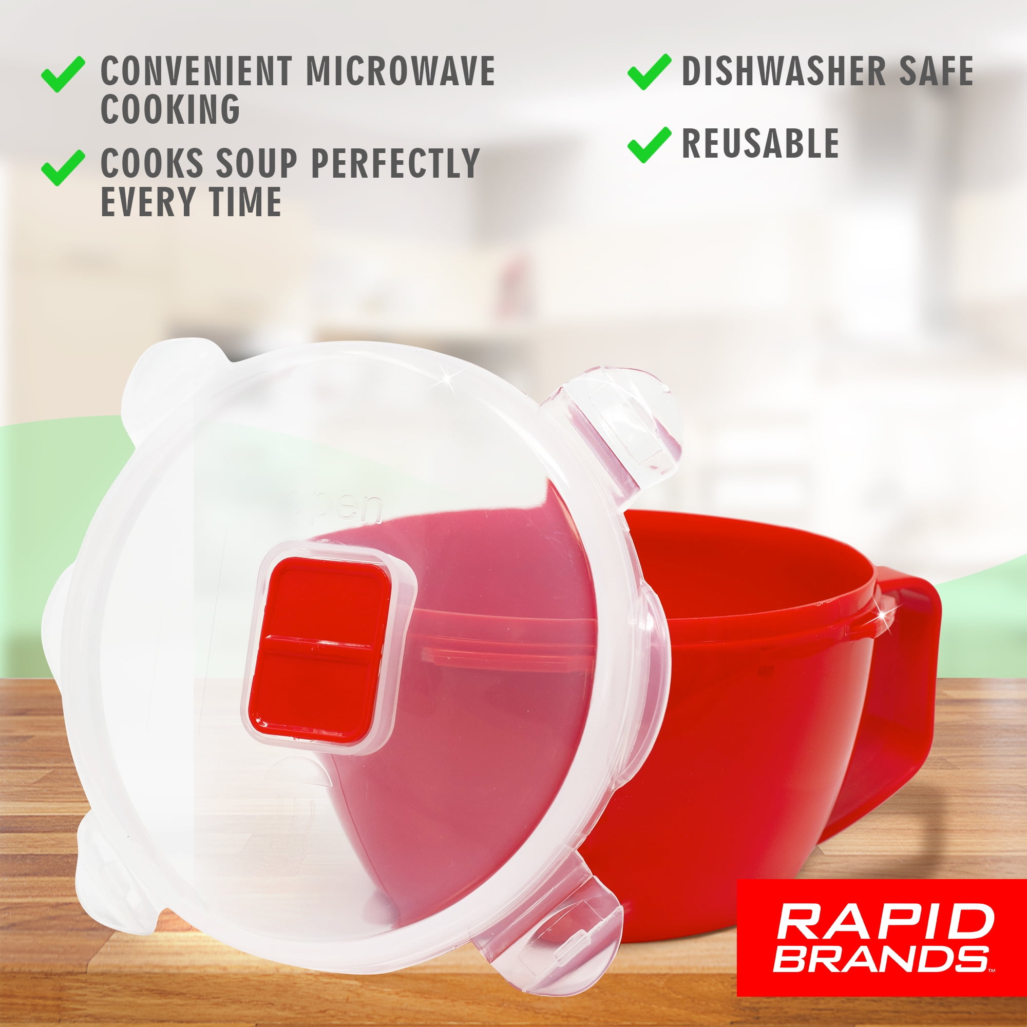 - EASY LUNCH — Reheat noodles, beverages, or soup in a flash! For days when you need a quick and hot meal, the Rapid Soup Mug cooks your favorite leftovers or soup in the microwave. Comes with a vented lid for temperature control.