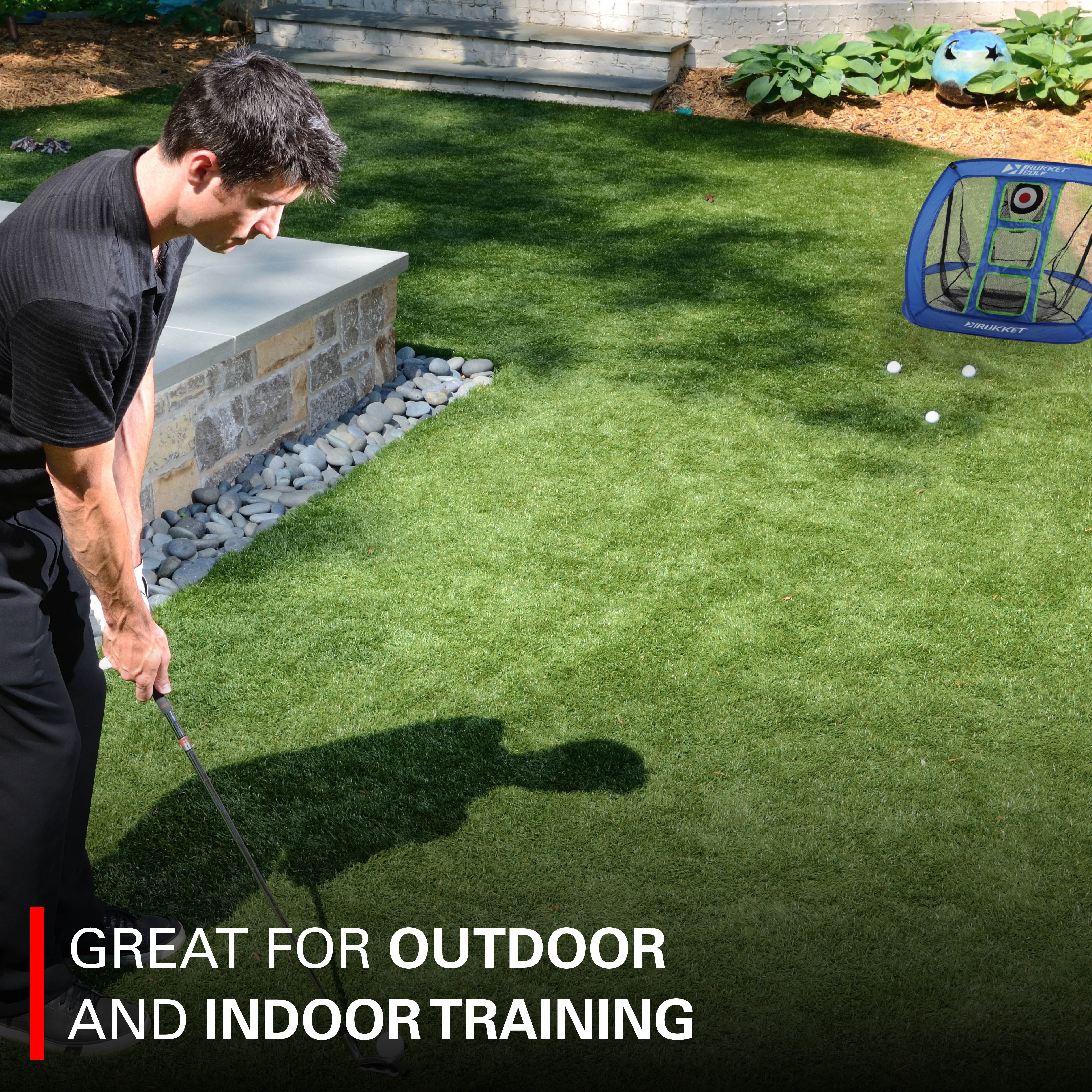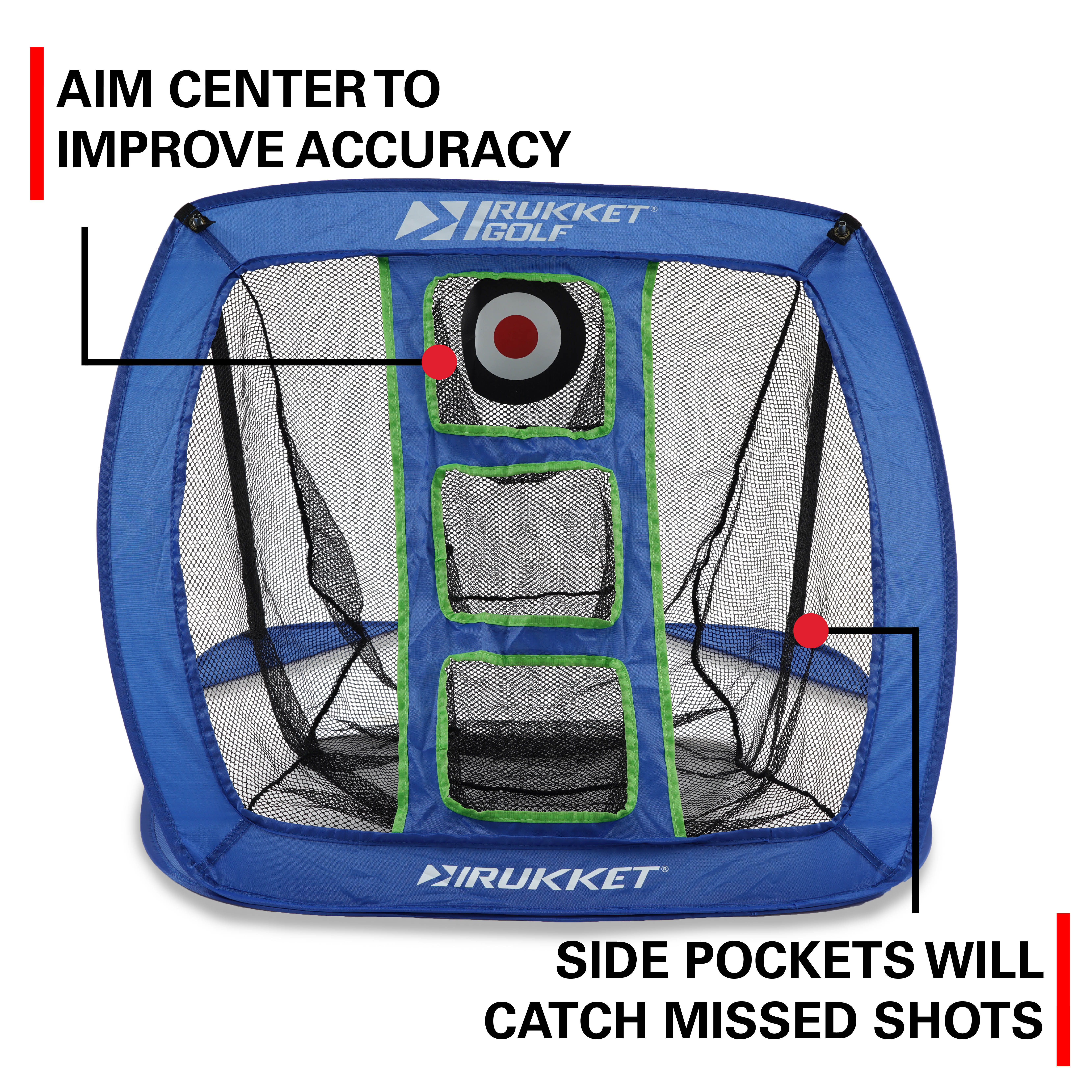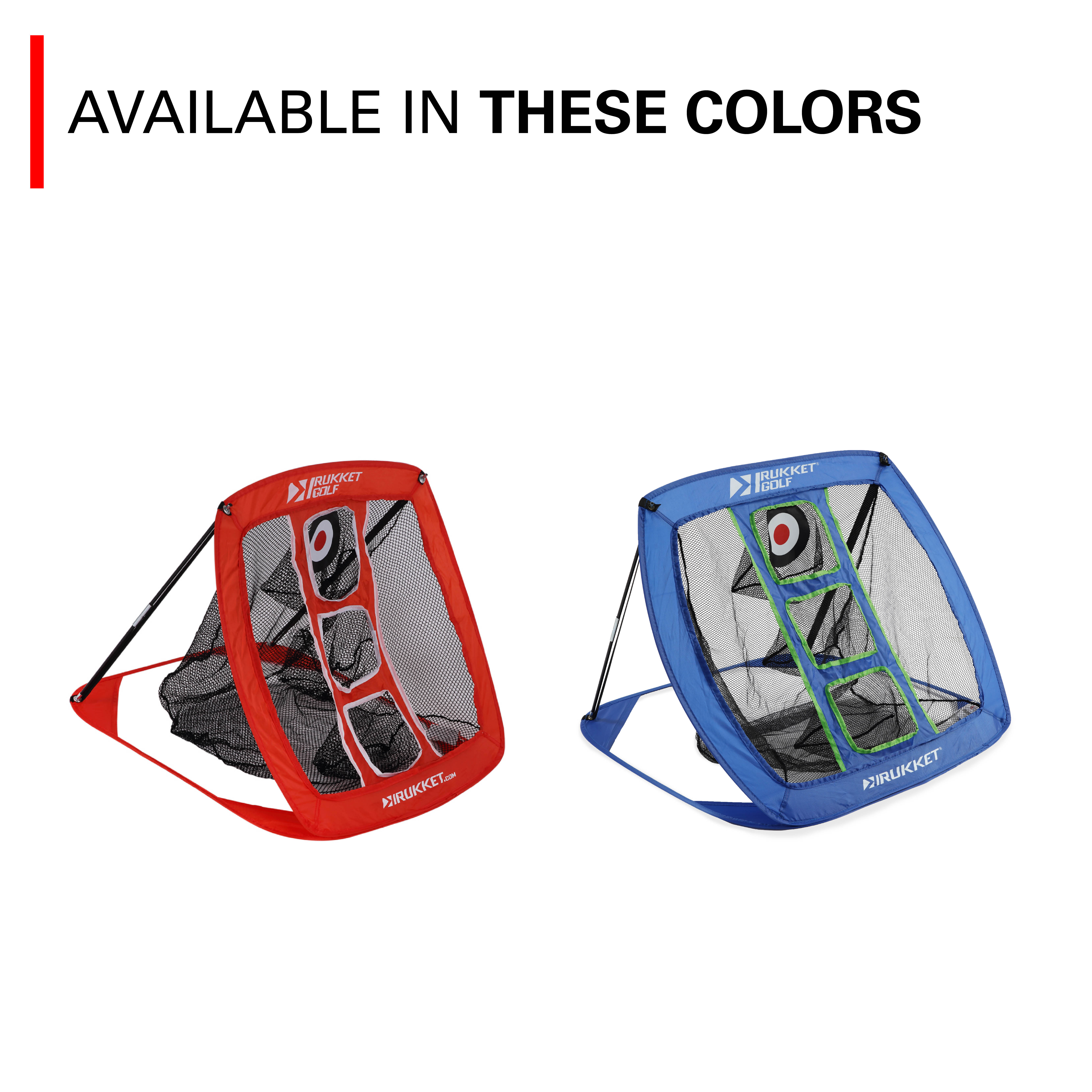 Take your practice and playing to the next level with our new Rukket Sports Golf Chipping Net. Practice in your basement or backyard while being able to set up your own chipping range within seconds. Challenge yourself with all three targets and improve your game exponentially. No need to worry about errant shots as well with our Rukket Practice Balls.Rukket Pop Up Golf Chipping Net | Outdoor/Indoor Golfing Target Accessories and Backyard Practice Swing Game | Includes 12 Foam Practice Balls (Classic Blue)