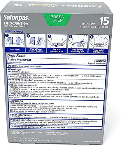 Salonpas Lidocaine 4% Pain Relieving Maximum Strength Gel-Patch, 1 Pack, 15 Count