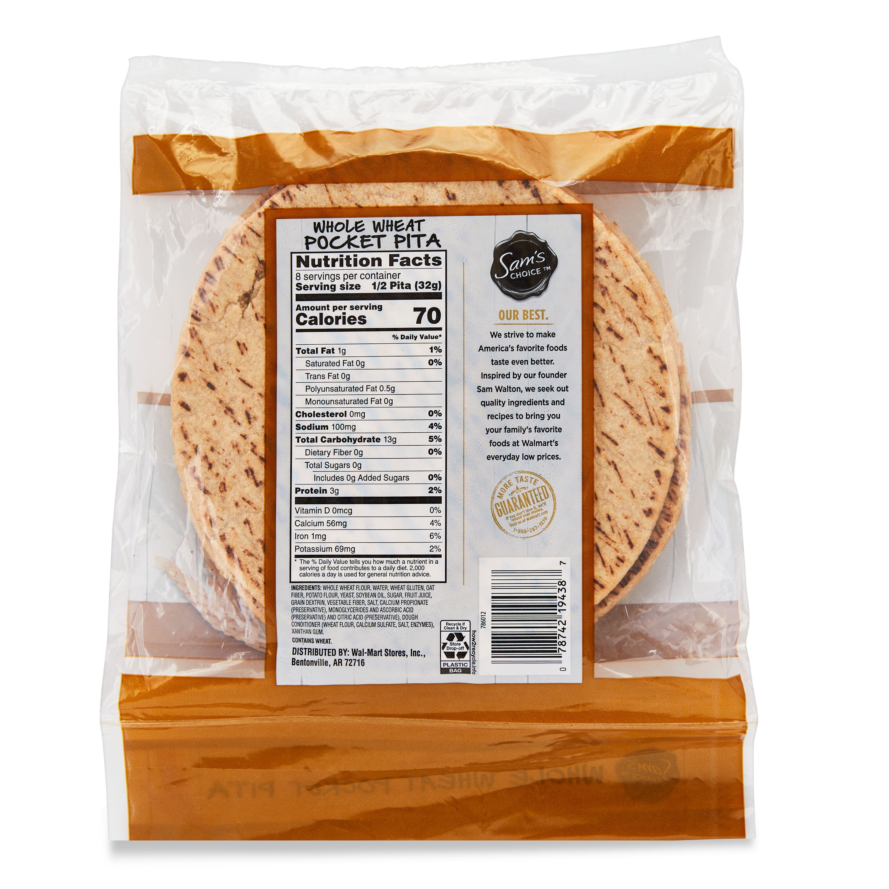 Sam’s Choice Whole Wheat Pocket Pita, 9 oz, 4 Count:
