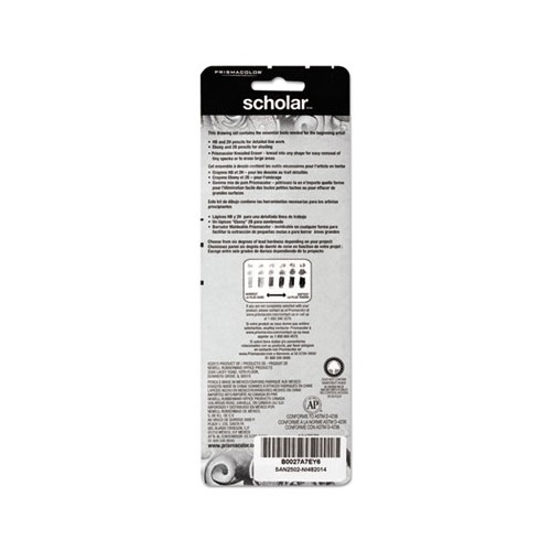Draw dark shadows, delicate highlights and sultry mid-tones with Prismacolor Scholar Graphite Drawing Pencils. Handy art kit features four different pencils with varying lead hardness ratings to give everyone from the beginning art student to the experienced crafter the tools they need to develop as artists. With the Scholar Set, youll have the art pencils you need to accomplish detailed line work, shading and large-area coverage. Five-piece set includes: HB, 2H, 2B and 4B graphite pencils along with a kneaded rubber eraser. Retractable Yes/No: No Eraser Yes/No: Yes Graphite Colors: Black Color Family: Black.