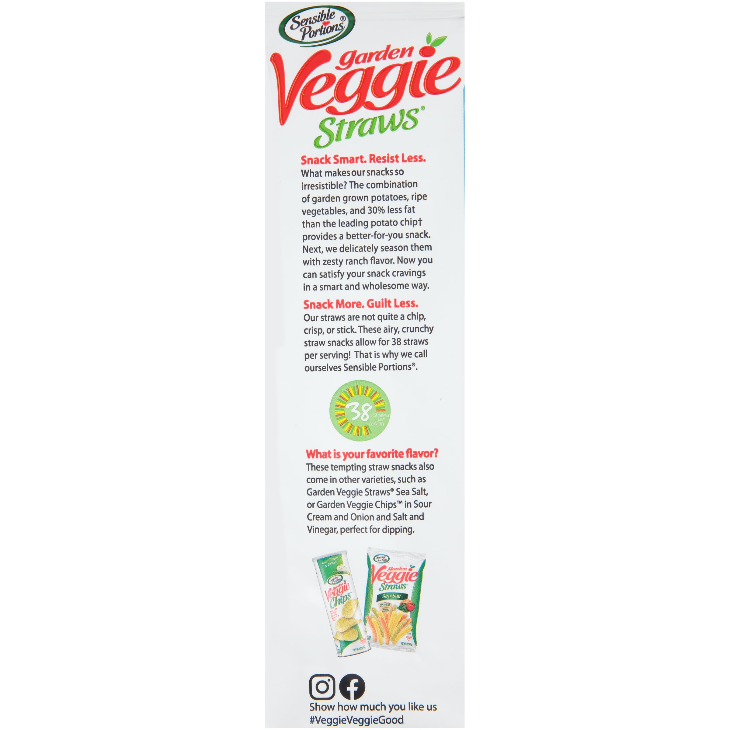 - One 2.25 oz bag of Sensible Portions Gluten-Free Zesty Ranch Garden Veggie Straws