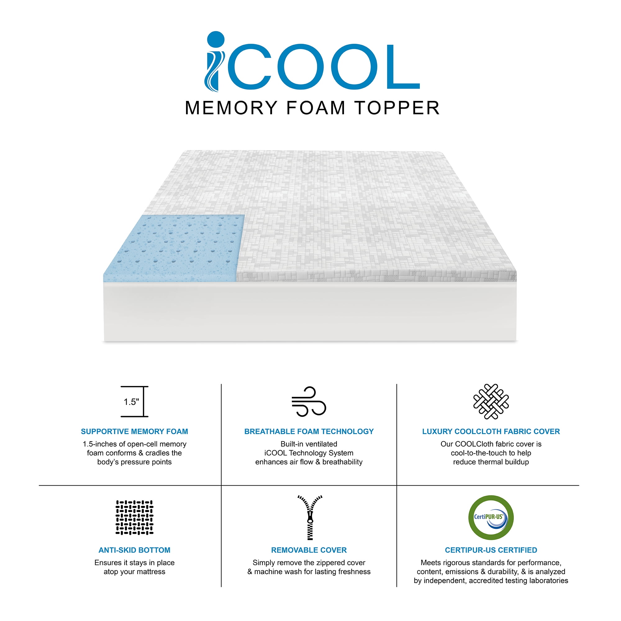 SensorPEDIC 1.5′ iCOOL Gel-Infused Memory Foam Mattress Topper Full