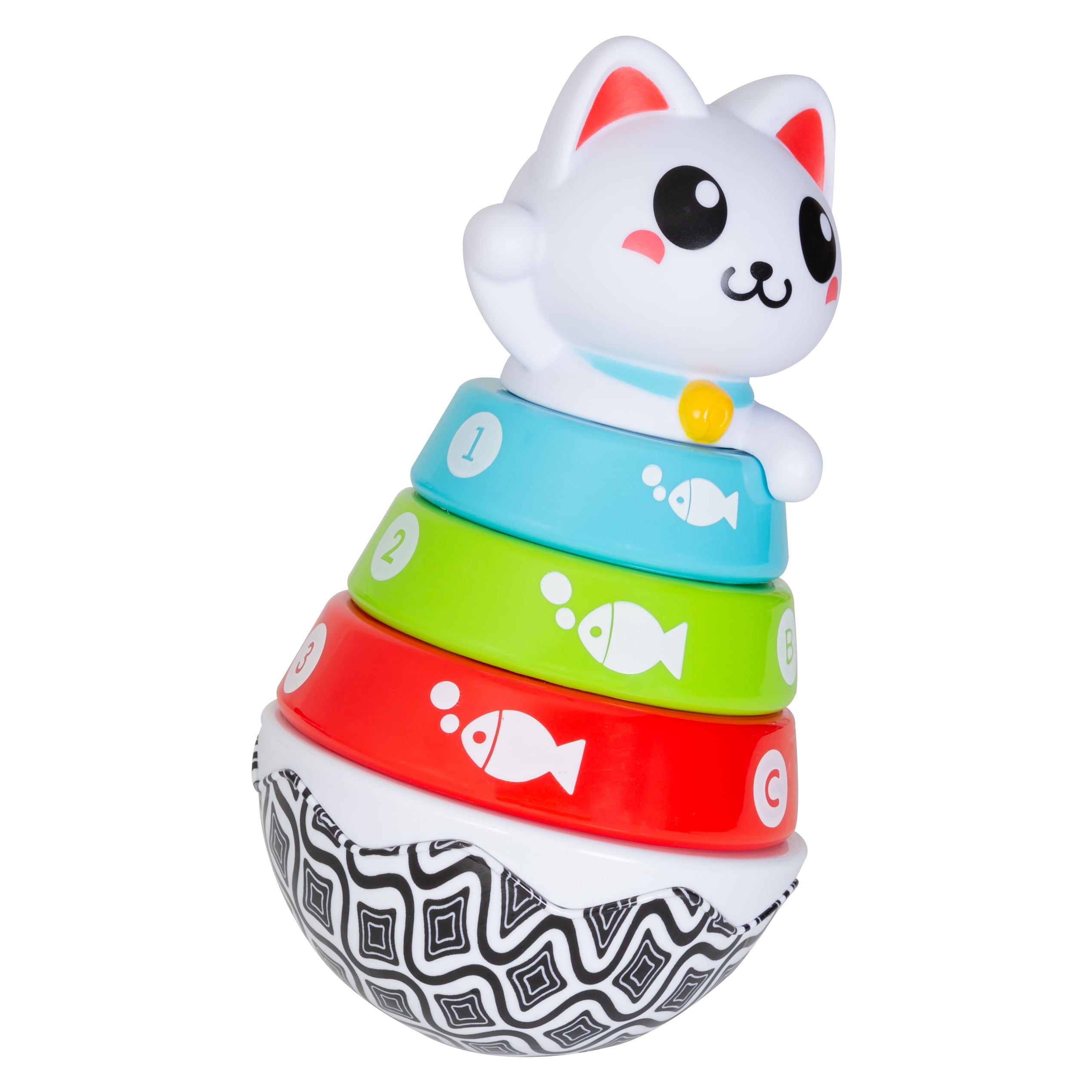 - ROCKING BOTTOM ADDS FUN AND ENJOYMENT: The bottom of the Stack-a-Cat is rounded, allowing it to wobble back and forth and make fun sounds. PERFECT FOR 9 MONTHS AND UP: Perfect gift for little ones 9 months and up, as it helps develop cognitive skills