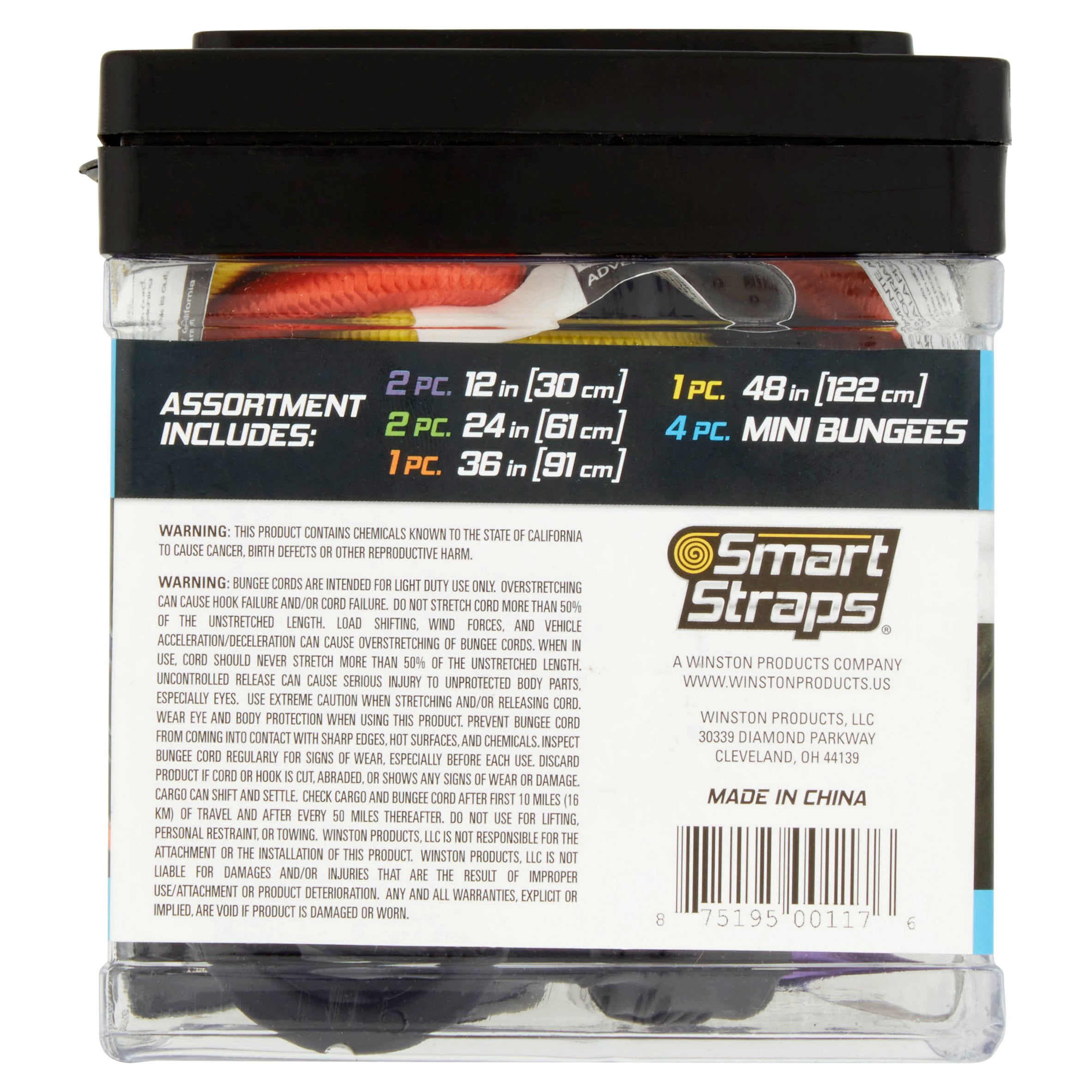 - Assortment includes 2 units 12 in (31 cm), 2 units 24 in (61 cm), 1 unit 36 in (91 cm), 1 unit 48 in (122 cm), 4 Mini Bungees