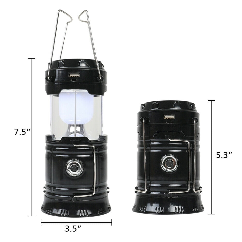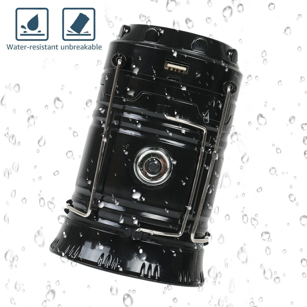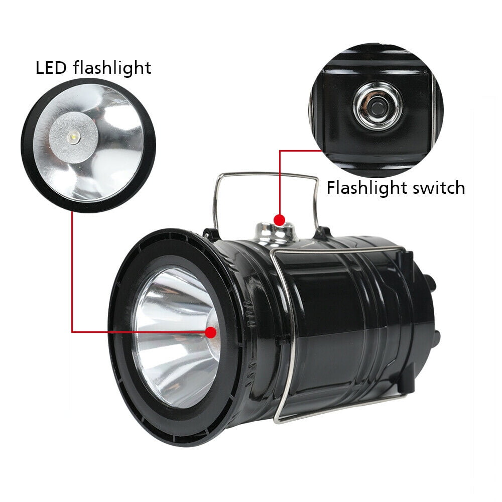 - Solar rechargeable camping lantern and handheld flashlight. You can use it as lantern by the collapsible design or as a flashlight by the side switch. Hang the lantern on camping tent or take away with the stainless steel handles.