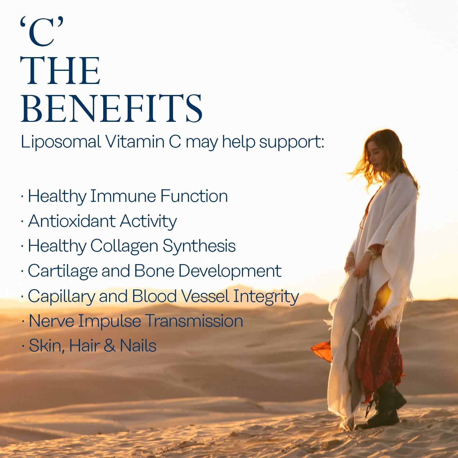 - Bioavailable C: Liposomal Vitamin C is combined with fatty acids to make it more available to cells