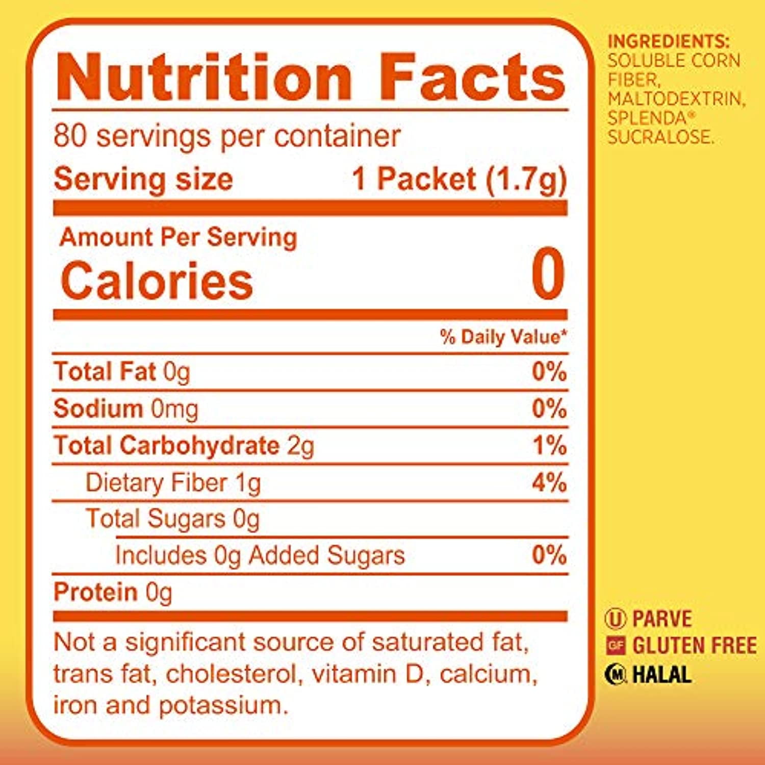 SPLENDA With Fiber No Calorie Sweetener, Single-Serve Packets (80 Count) (Pack of 1)
