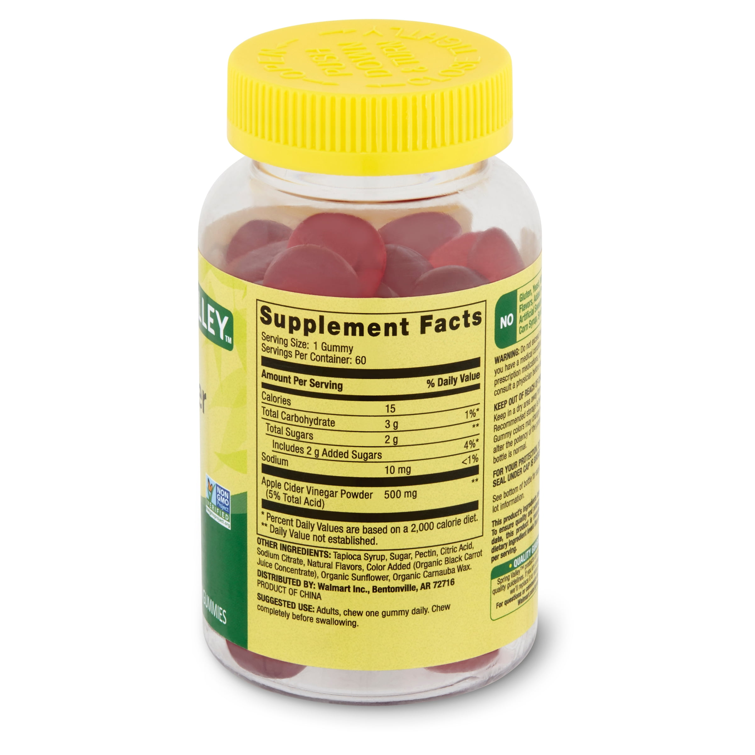 Spring Valley Apple Cider Vinegar Vegetarian Gummies are the simplest, best-tasting way to take apple cider vinegar. Our delicious and easy to chew gummies make taking your daily Apple Cider Vinegar supplement a joy. Spring Valley understands living a healthy, balanced lifestyle is the key to being your best self. With a commitment to using only the highest quality ingredients, Spring Valley gummies are a simple and delicious addition to your daily routine that you can feel good about. Our affordable range of high-quality products supports you and your family’s health and holistic wellbeing.
