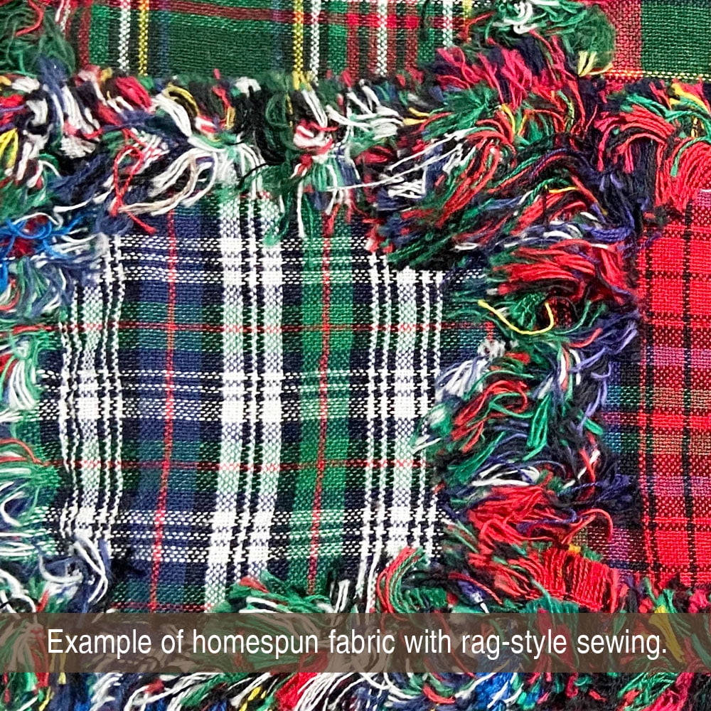 The example photos are samples of rag style sewing created with JCS Fabrics. The photos are for example only. This listing is only for the homespun fabric by the yard, not the completed projects. There are many free rag quilting patterns and tutorials available online. Multiple quantities will be cut in one continuous length up to 15 yards.