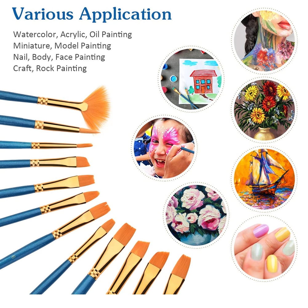 12 Styles of Artist Brushes Set: :This paint brush set provides a wide variety of 12 brush shapes and sizes to help you achieve maximum desired painting result.