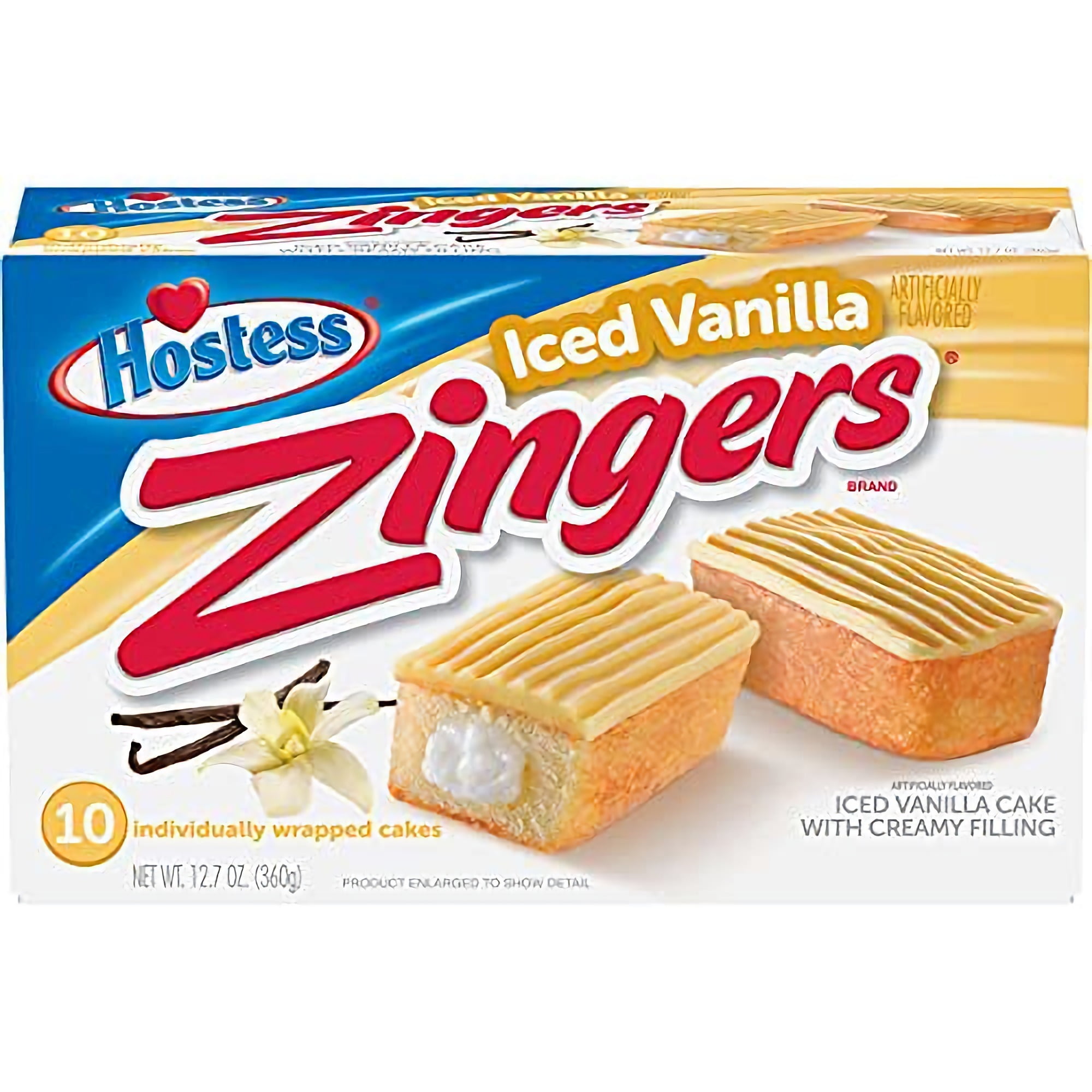 - One 12.7 ounce, 10 count box of Hostess Iced Vanilla Zingers