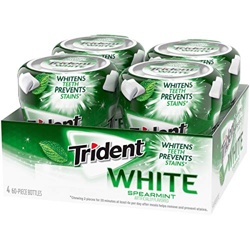 Chew On This The refreshing flavor of Trident White creates a feel-good chewing experience while brightening your teeth. Plus, the gum has 30% fewer calories than sugared gum. Pop a piece after eating or drinking to help prevent stains, then get ready to chew your way to a megawatt smile. Unapologetically Flavorful Freshen your breath (and care for your mouth) with flavor you can taste and feel. Trident Sugar Free Gum comes in cool long-lasting flavors that give you close-up confidence. Add this gum to care packages, gift baskets, goodie bags, and party favors, or keep a pack on-hand for an instant flavor refresh. Add this package of Trident White Spearmint Flavor Sugar Free Gum to your cart for fresher breath and smiles.Trident White Sugar Free Gum (Spearmint, 60-Piece, 4-Pack) Spearmint (4 Pack) NEW