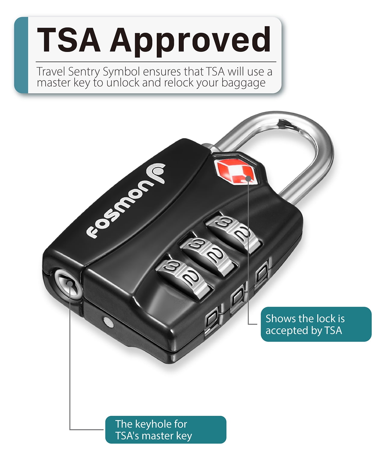 TSA Approved Luggage Locks, Fosmon 4 Pack 3 Digit Combination for Travel Bag, Suit Case, Lockers, Gym, Bike Locks