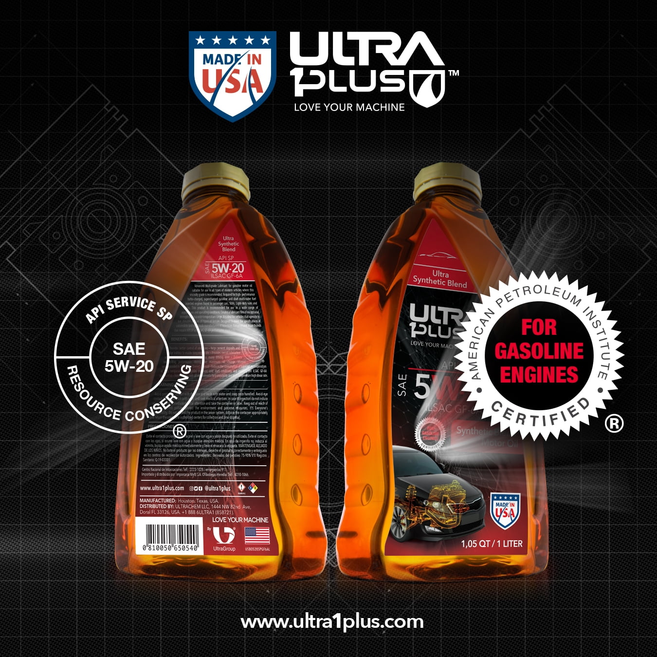 Ultra1Plus™ SAE 5W-20 Synthetic Blend Motor Oil, API SN Plus, ILSAC GF-5 is formulated with a blend of conventional and synthetic base oils and a premium additive package. This oil is designed for use in carbureted, fuel injected, turbocharged and supercharged gasoline engines in both normal and extreme operating conditions. This oil exceeds the performance requirements of API SN Plus and ILSAC GF-5.