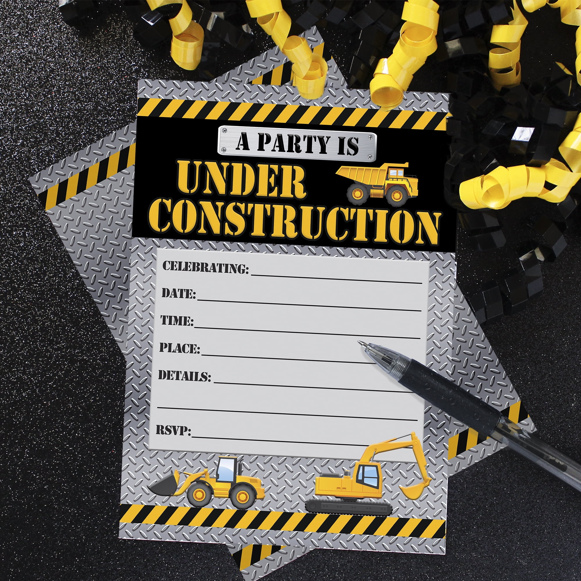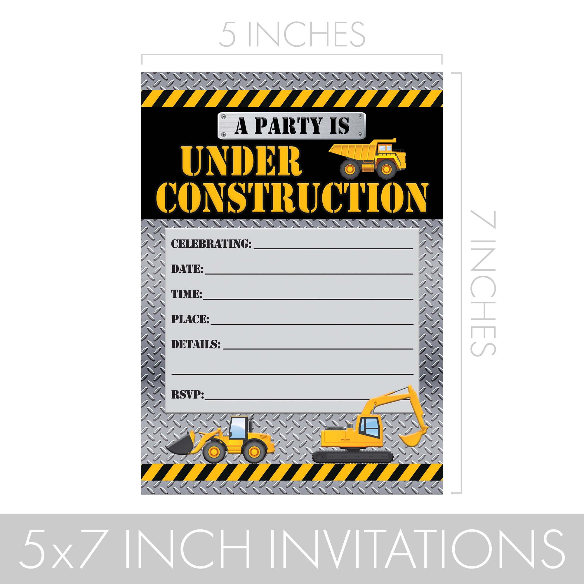 - SPACIOUS LINES to fill in event and RSVP info – versatile enough to use for any construction themed celebration. Header: A Party is Under Construction