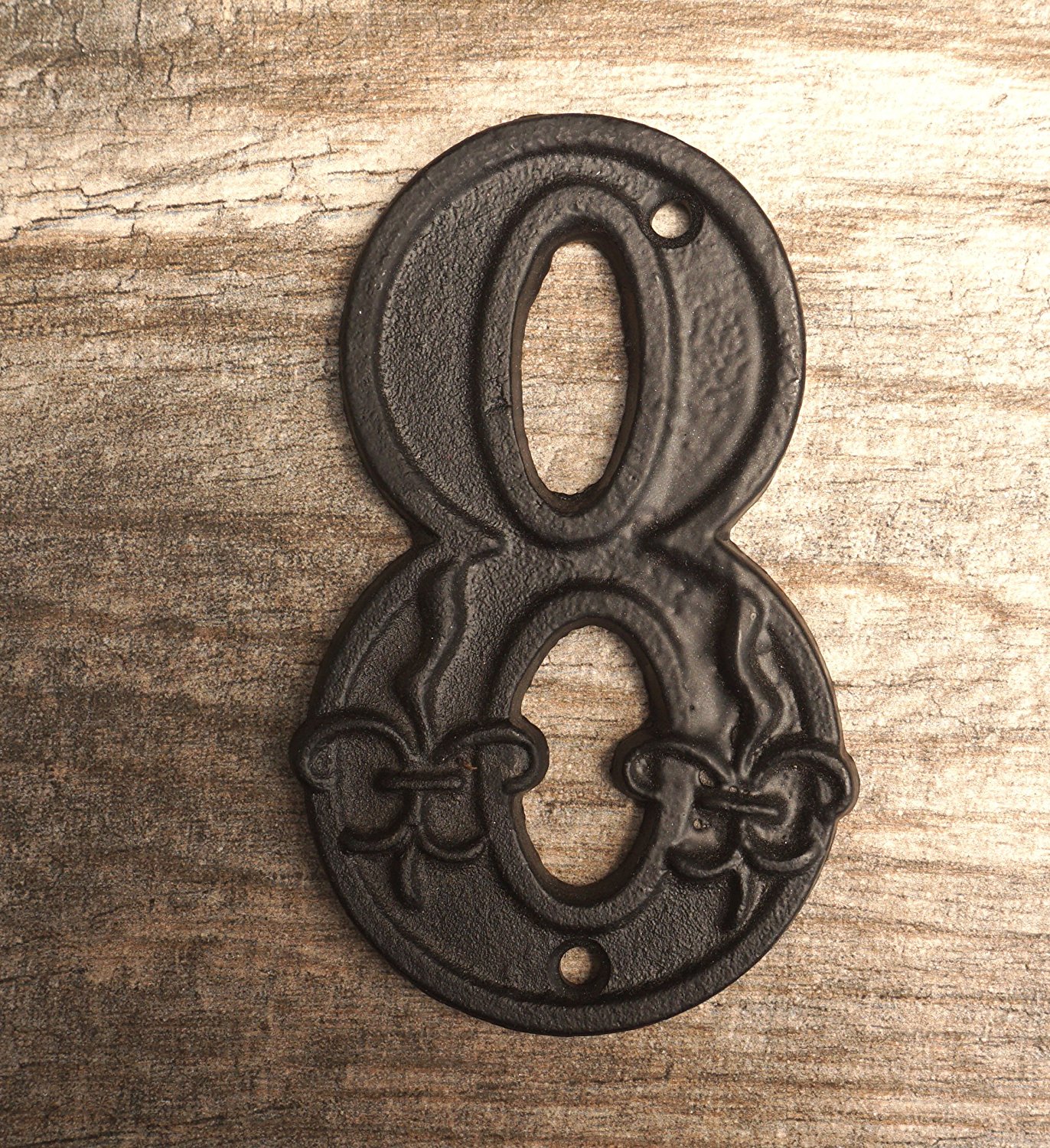 Lulu Decor, Cast Iron House Number 8 Vintage Black Finish with Fleur De Lis (# 8)