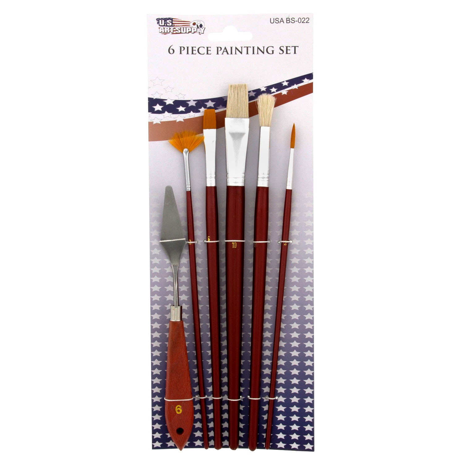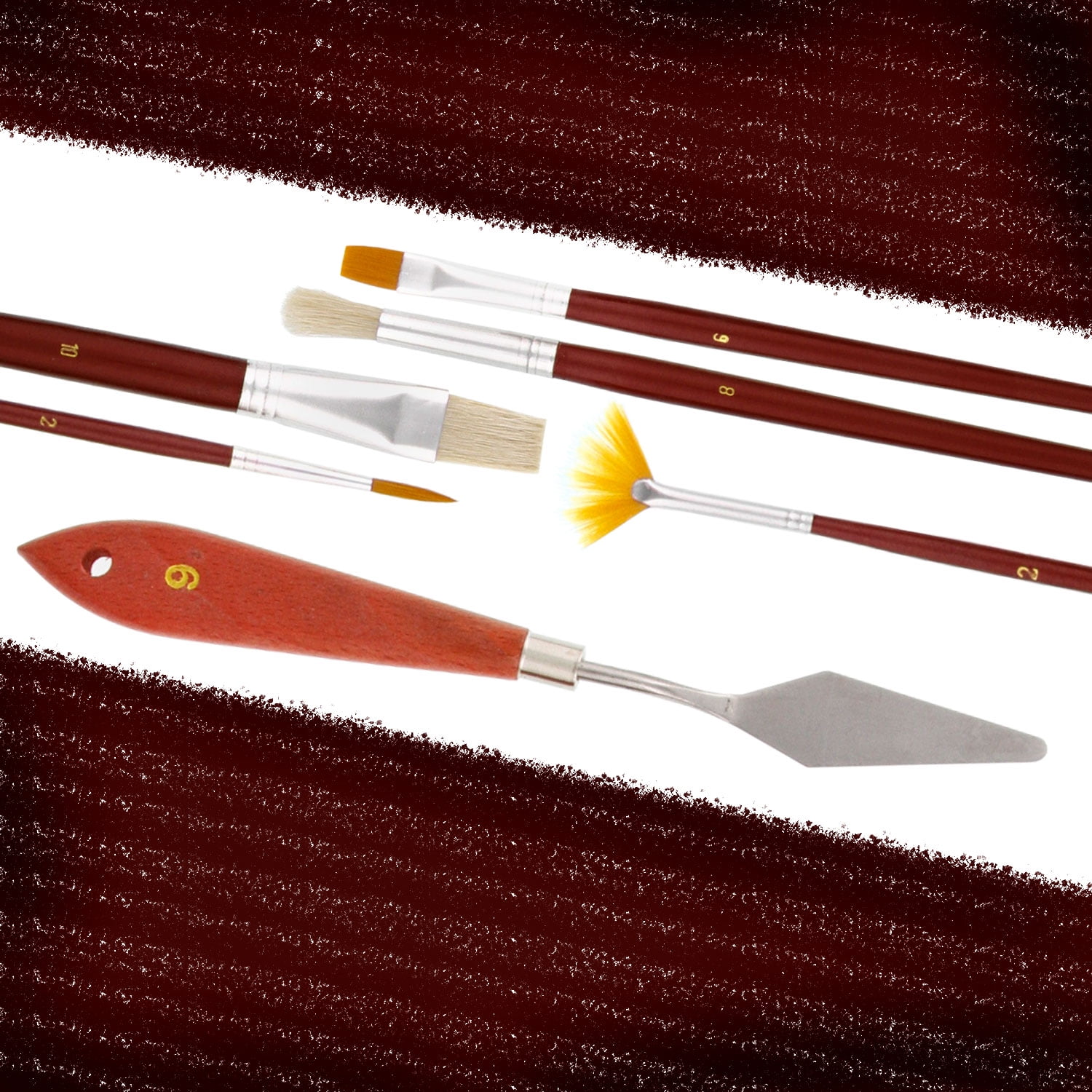 6 Piece Short Handle Brush Set #6 Metal Palette Knife