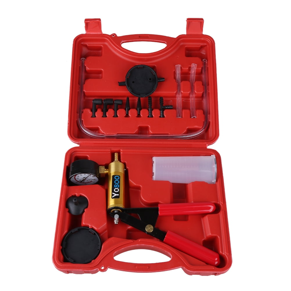 This self bleed hand held vacuum pump kit used to test a variety of essential vehicle settings and operations. It can check vacuum and pressure operated automotive components. The hand held pump has a smooth action pull trigger that is as long as the length of the handle for your comfort and you instantly get pressure readings from the easy to read gauge situated at the front of the gun. It is easy to use and equipped with hard plastic carry case, including everything you need.
