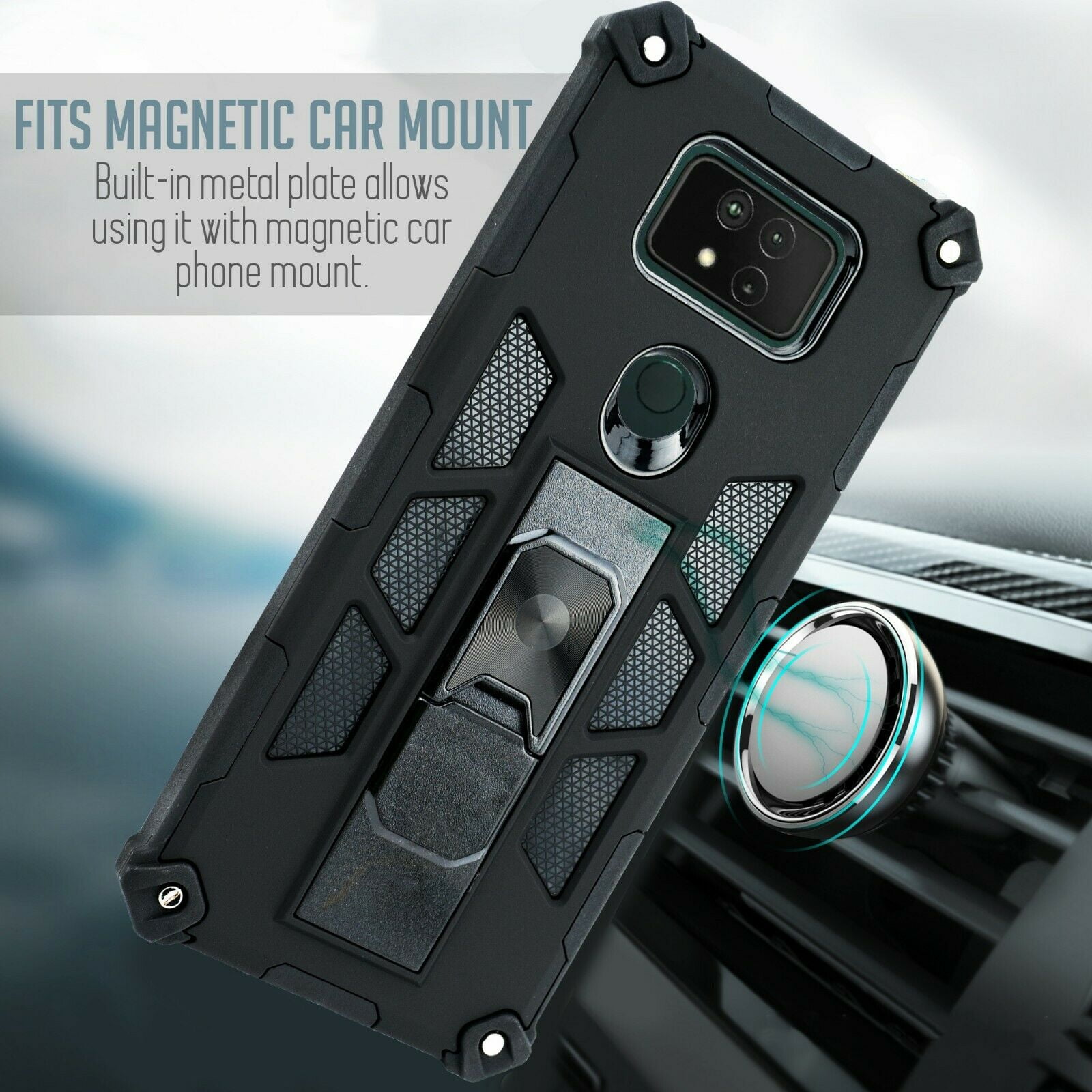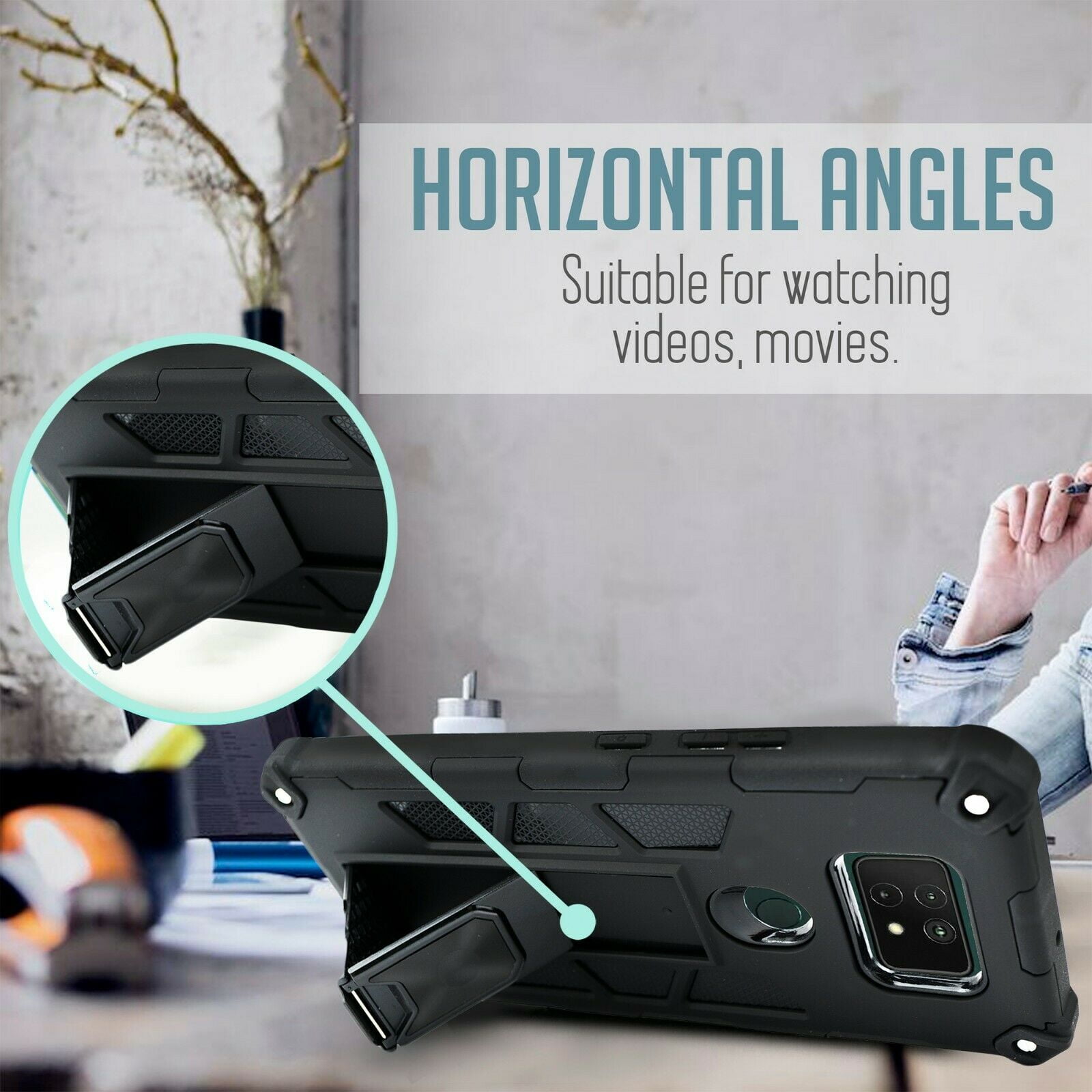 This slim phone case comes with a built-in kickstand. Great convenience and light weight. Reach for your phone in the pocket easily. Put the phone on a table for viewing, hands-free. HardBack frame with Soft silicone TPU shock absorber provide great protection. The high quality and detailed construction make this a best / special fit for your need.