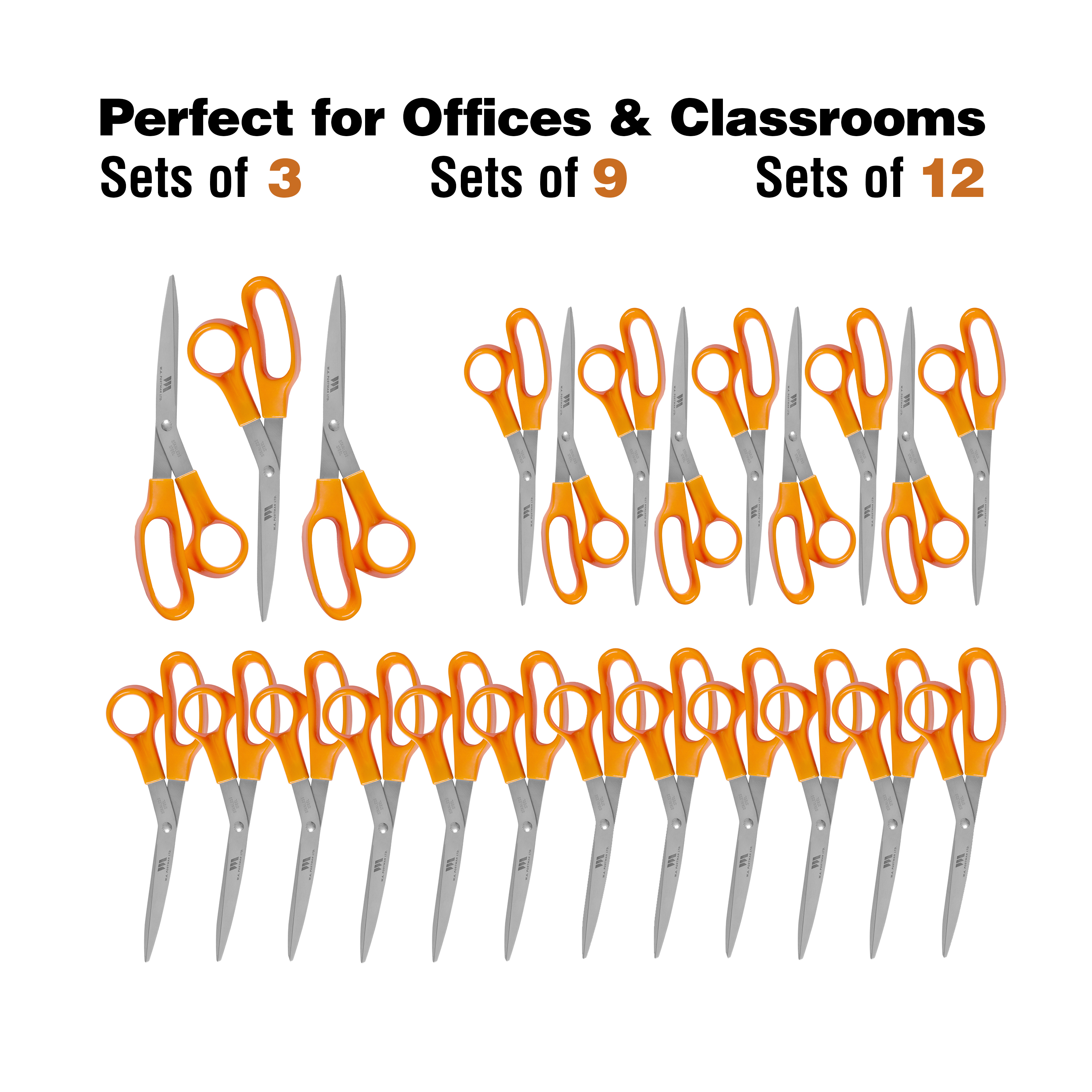 Looking for a set of reliable sewing scissors? WA Portman has you covered! Cut through layers of various materials with these stainless steel scissors for fabric. Each pair of scissors has a sharp point to easily snip into tight corners or around abstract shapes. They also have comfort-grip handles and can be used as right or left handed pointed scissors. With this pack of 12 scissors you can use them in a classroom, studio, or just kept around your home! Each pair of sewing shears is honed to a sharp edge for crisp, clean cuts every time!