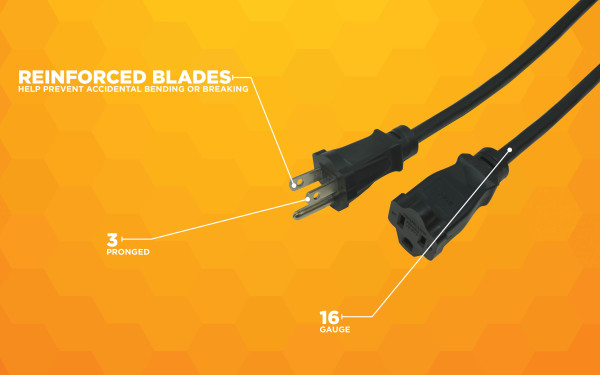 - DURABLE 16 gauge, 3 pronged WOODS extension cord with reinforced blades prevent accidental bending or breaking. More reliable at longer distances than thinner 18 gauge extension cords