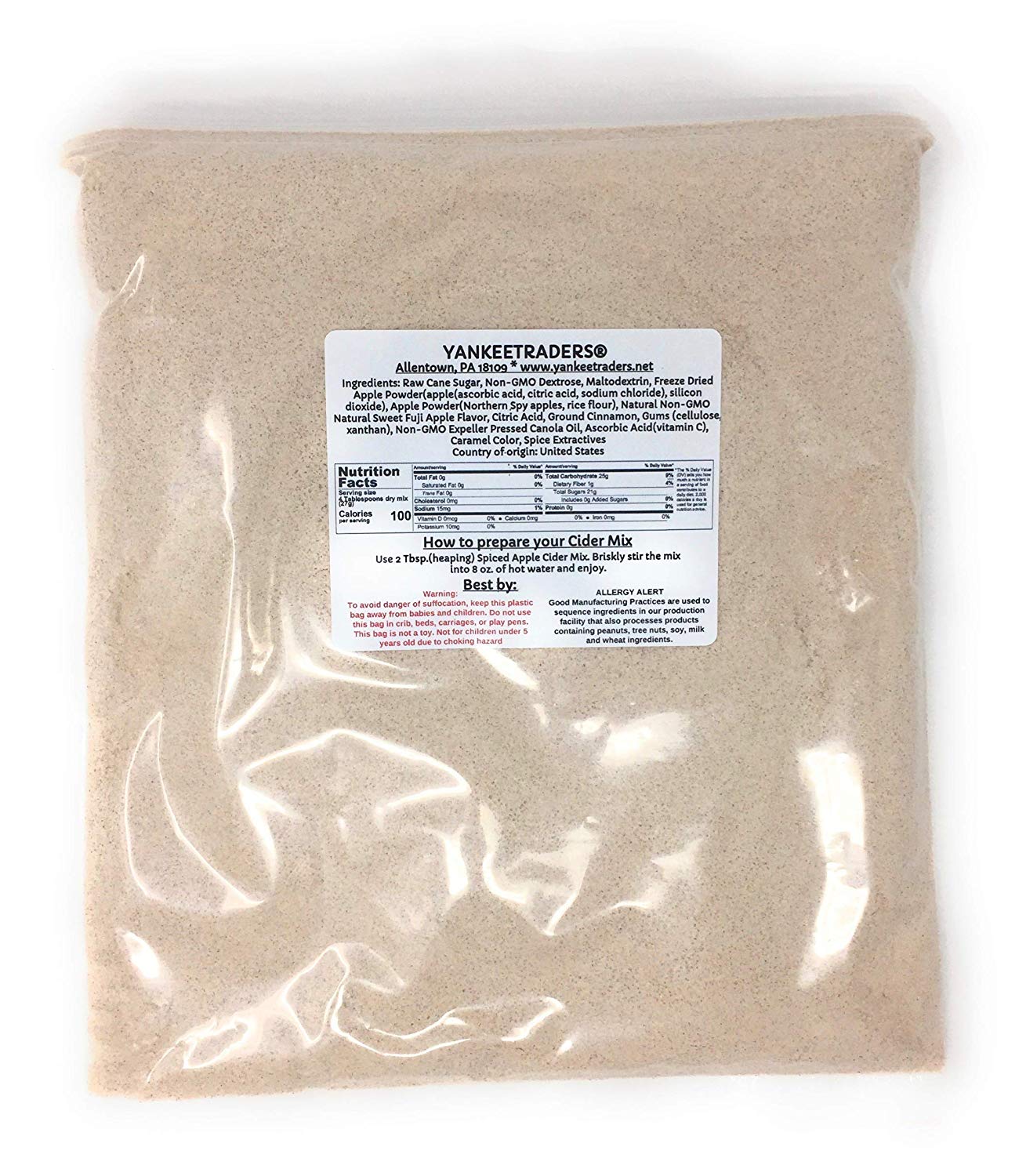 YANKEETRADERS Apple Cider Mix, 2 Lbs bulk. Made with raw cane sugar, real natural apple powder and no artificial colors or flavors. Create mugs of warm spiced cider in minutes. Simply add hot water, stir and enjoy!A great addition to all your seasonal holiday parties and get together’s