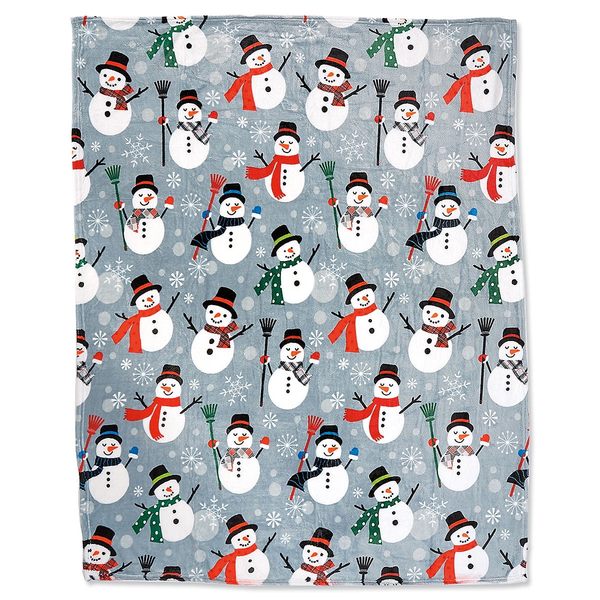 Snowmen on Gray Plush Throw – 50′ x 60′, Double Sided, Christmas, Gift