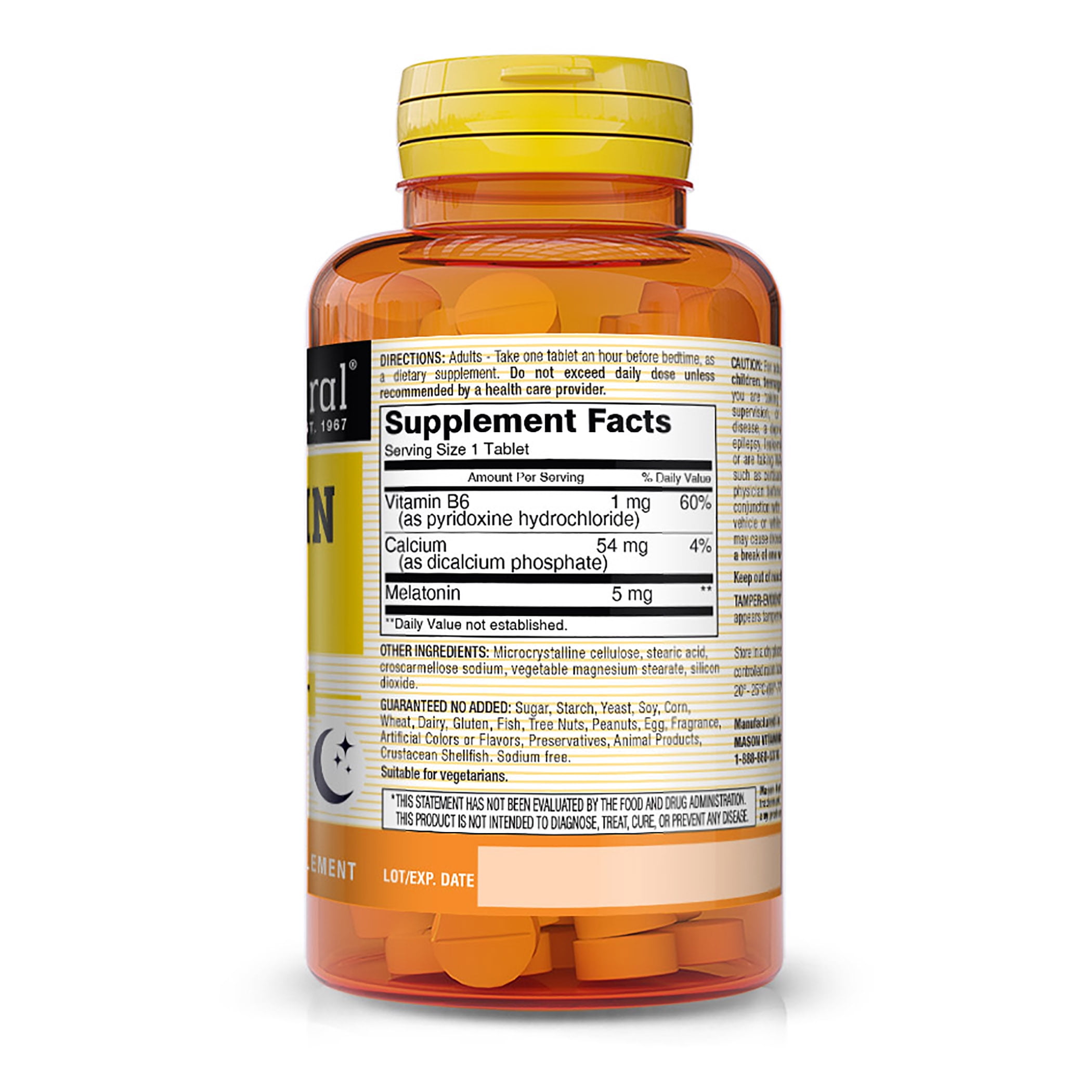 Mason Natural Melatonin 5 mg with B6 and Calcium – Natural Sleep Aid, Supports Healthy Sleep & Rest, 120 Tablets