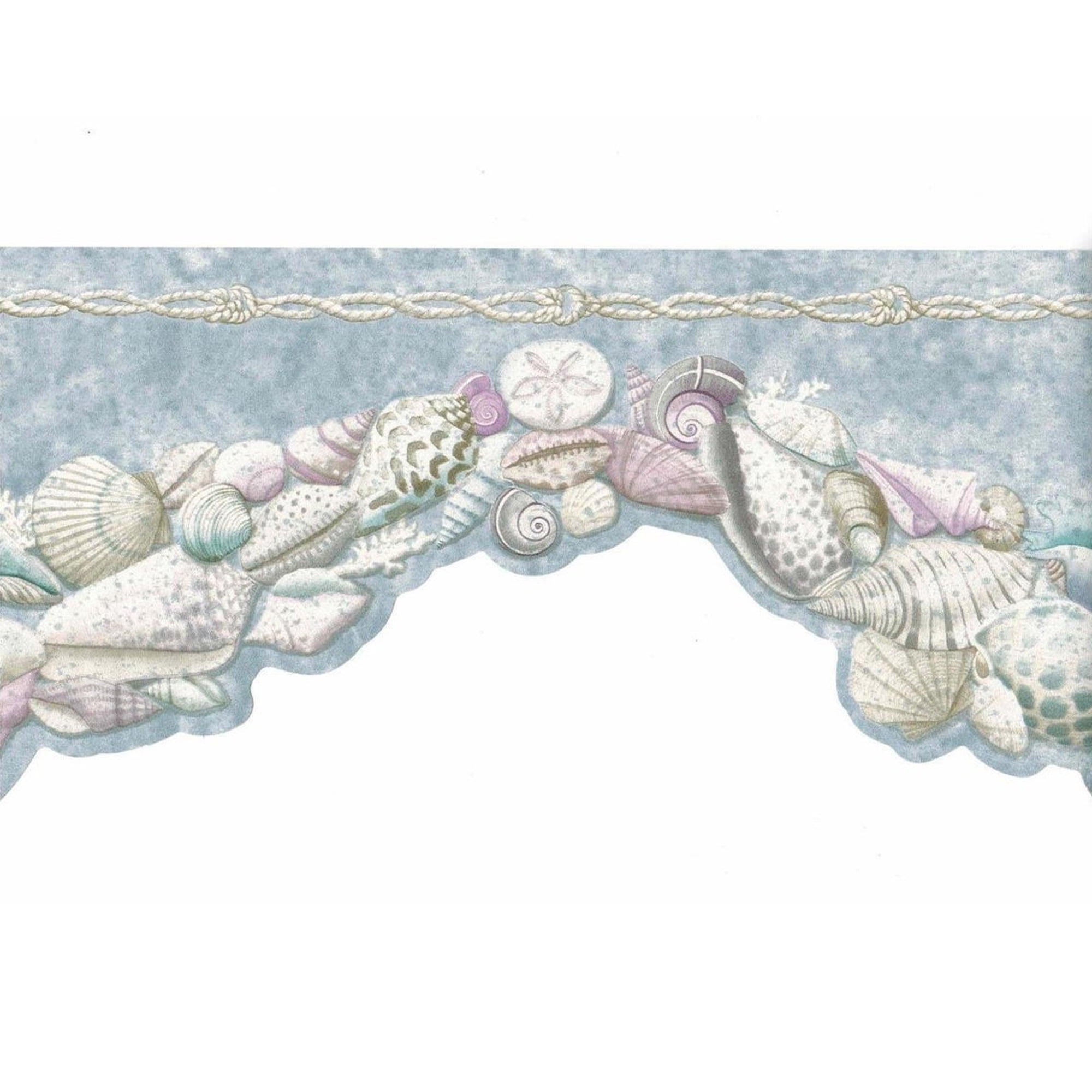 Coastal Seashells Pale Blue Pastel Scalloped Wallpaper Border