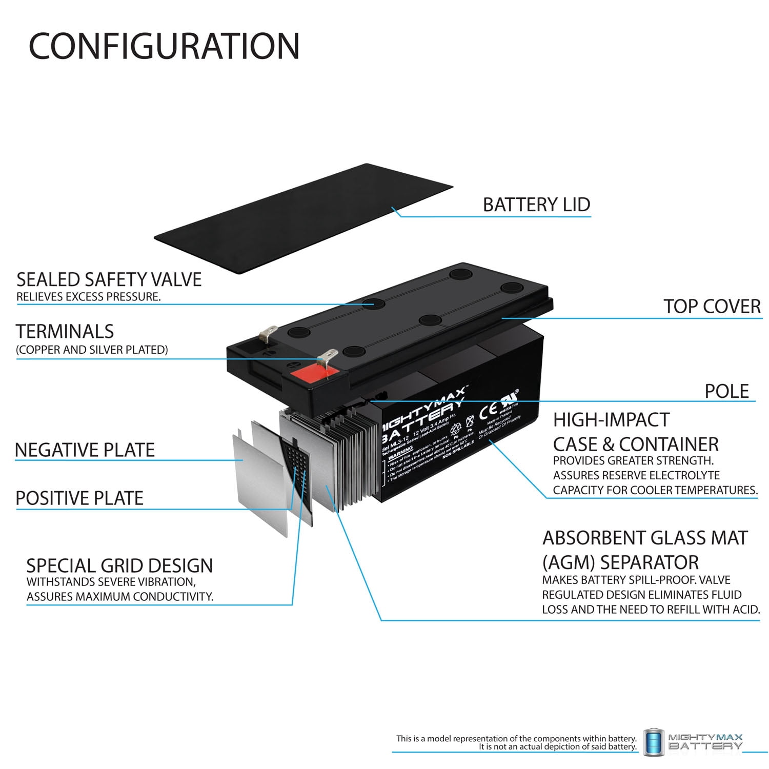 Mighty Max Battery ML3-12 12V 3.4AH Replacement for PC2.9-12L ES2.9-12 + 12V Charger