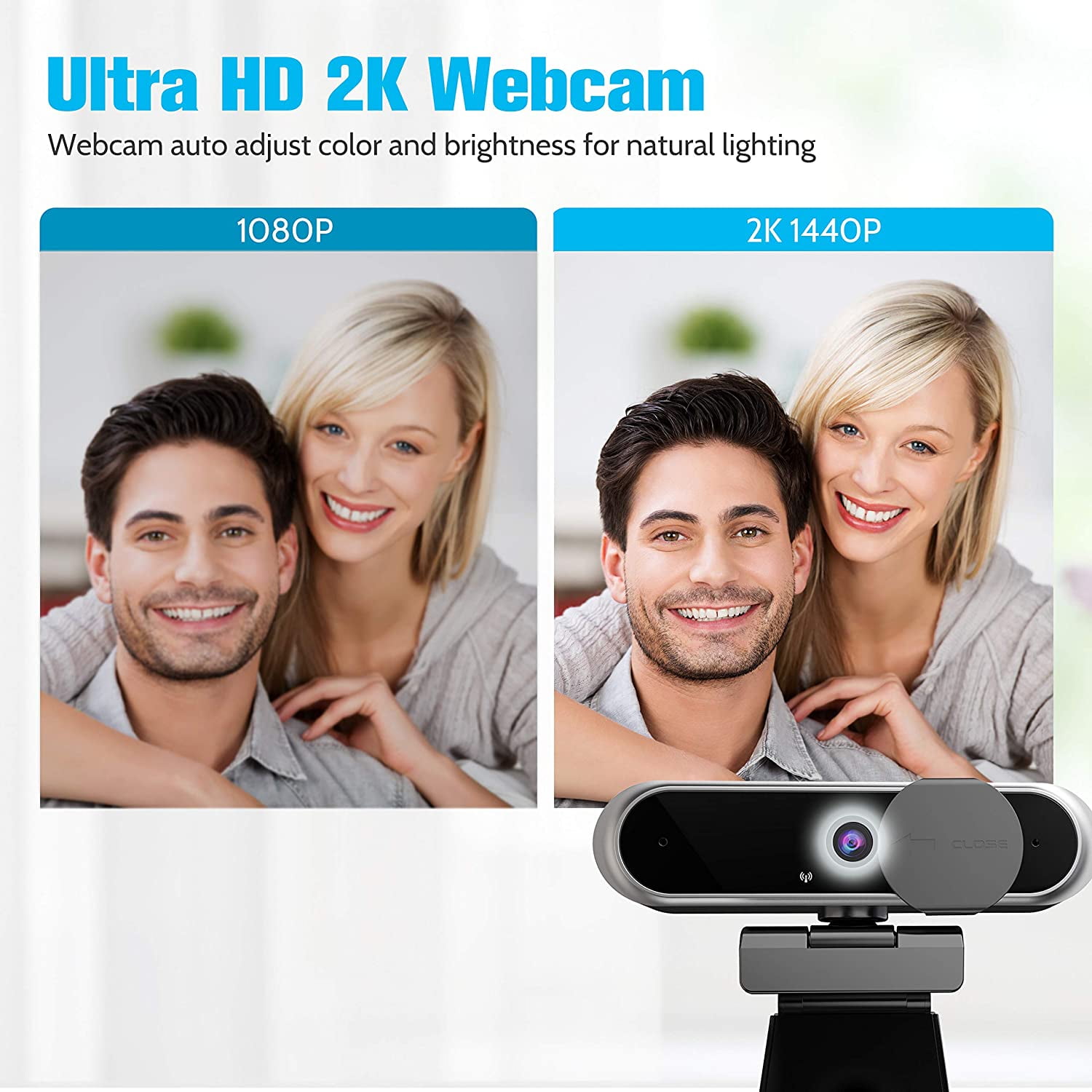 Lexvss Webcam with Microphone, 2K USB Computer Camera tripod