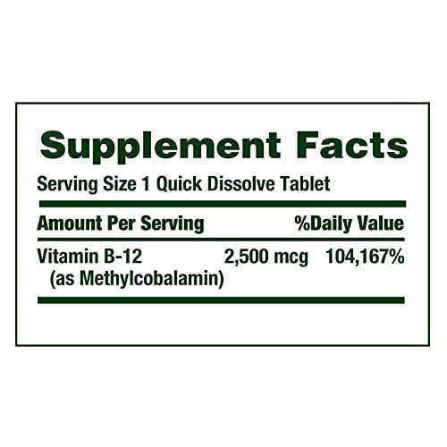 Nature’s Bounty Methylcobalamin Vitamin B-12 2500 mcg 300 Quick Dissolve Tablets