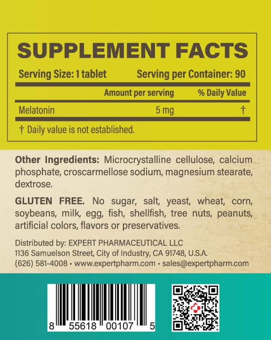 EXPERTPHARM | Melatonin | Help You Get A Good Sleep | 5 mg, 90 count