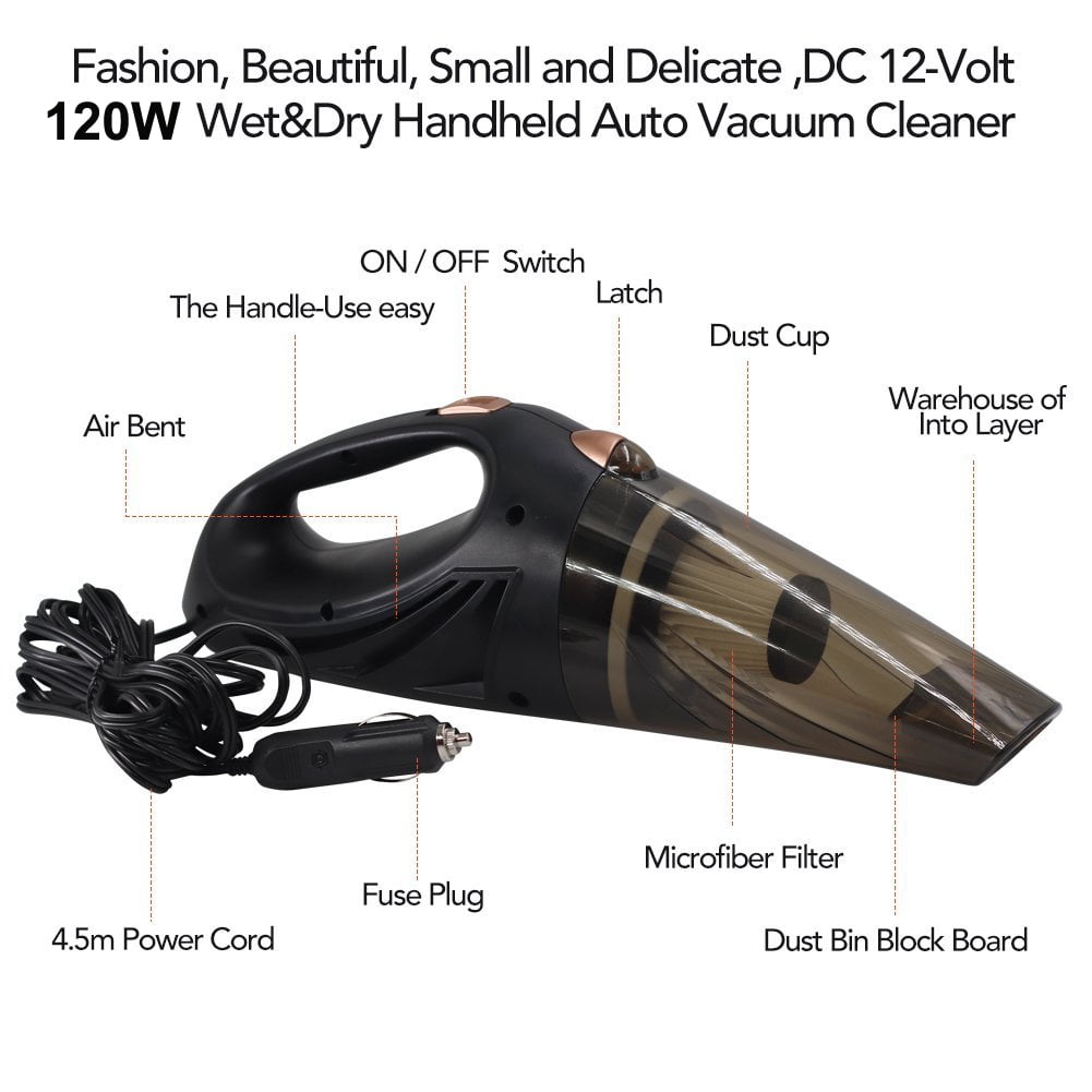 Car Vacuum Cleaner 12V Cord (16ft Cord) with Aluminum Fan. Go Mobile Carwash