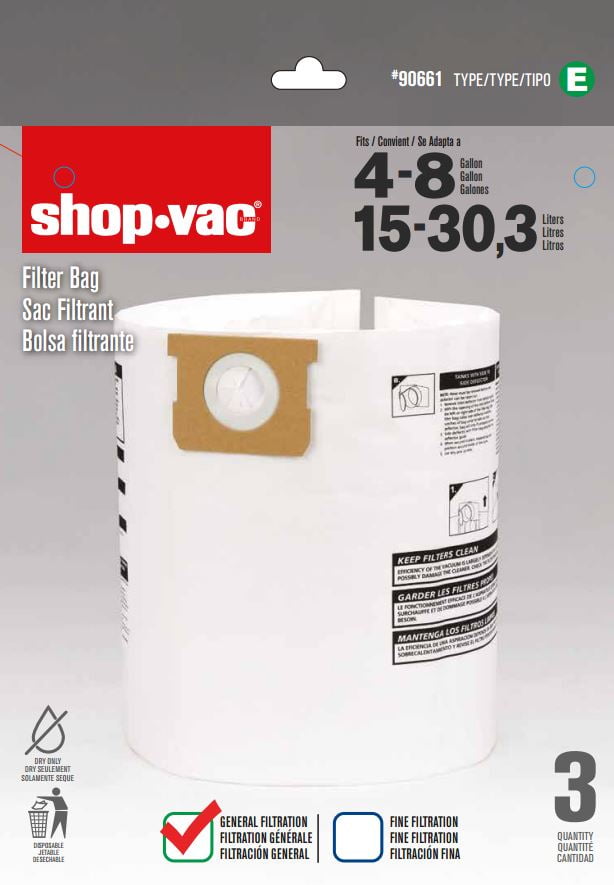 Shop-Vac Three Disposable 4-8 Cleaner Gal Bags Type E in White for Shop-Vacs