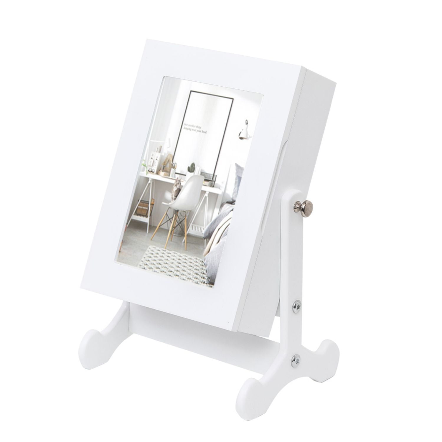 Cmgb Small Mirror Jewelry Cabinet Organizer Armoire Storage Box Countertop with Stand White
