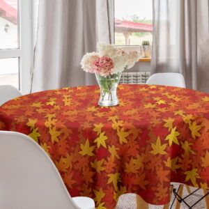 Orange Round Tablecloth, Colorful Autumn Fall Season Maple Leaves in Unusual Designs Nature Print, Circle Table Cloth Cover for Dining Room Kitchen Decor, 60′, Burnt Orange, by Ambesonne