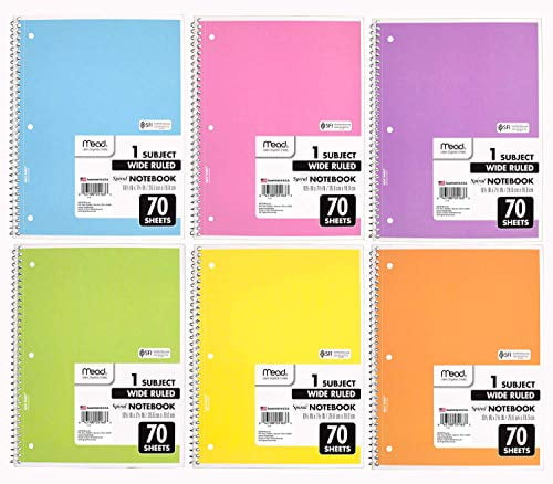 Mead Spiral Notebook, Wide Ruled, 1 Subject, Assorted Pastel Colors, 6 PACK