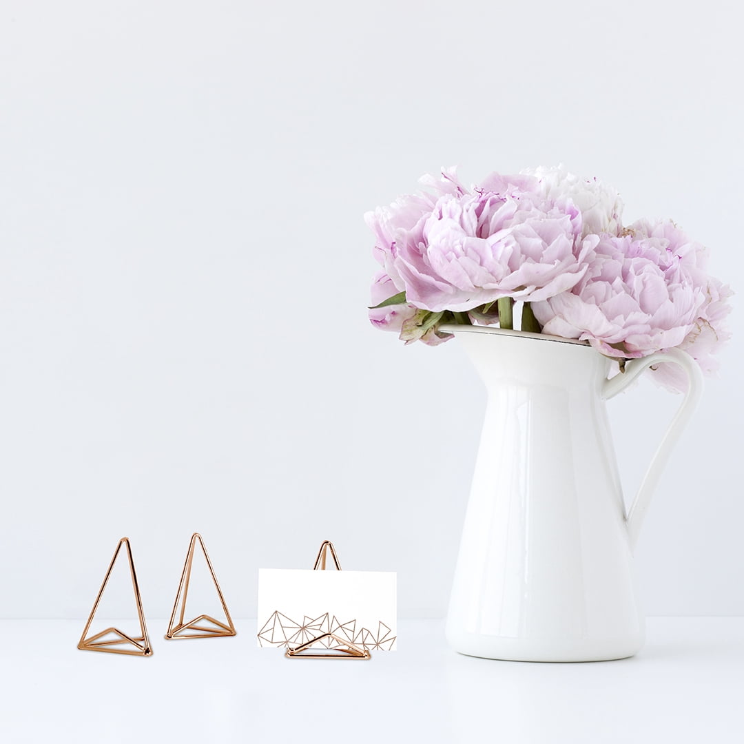 Koyal Wholesale Modern Metal Geometric Triangle Wedding Place Card Holders, Set of 12 Rose Gold Table Number Holders
