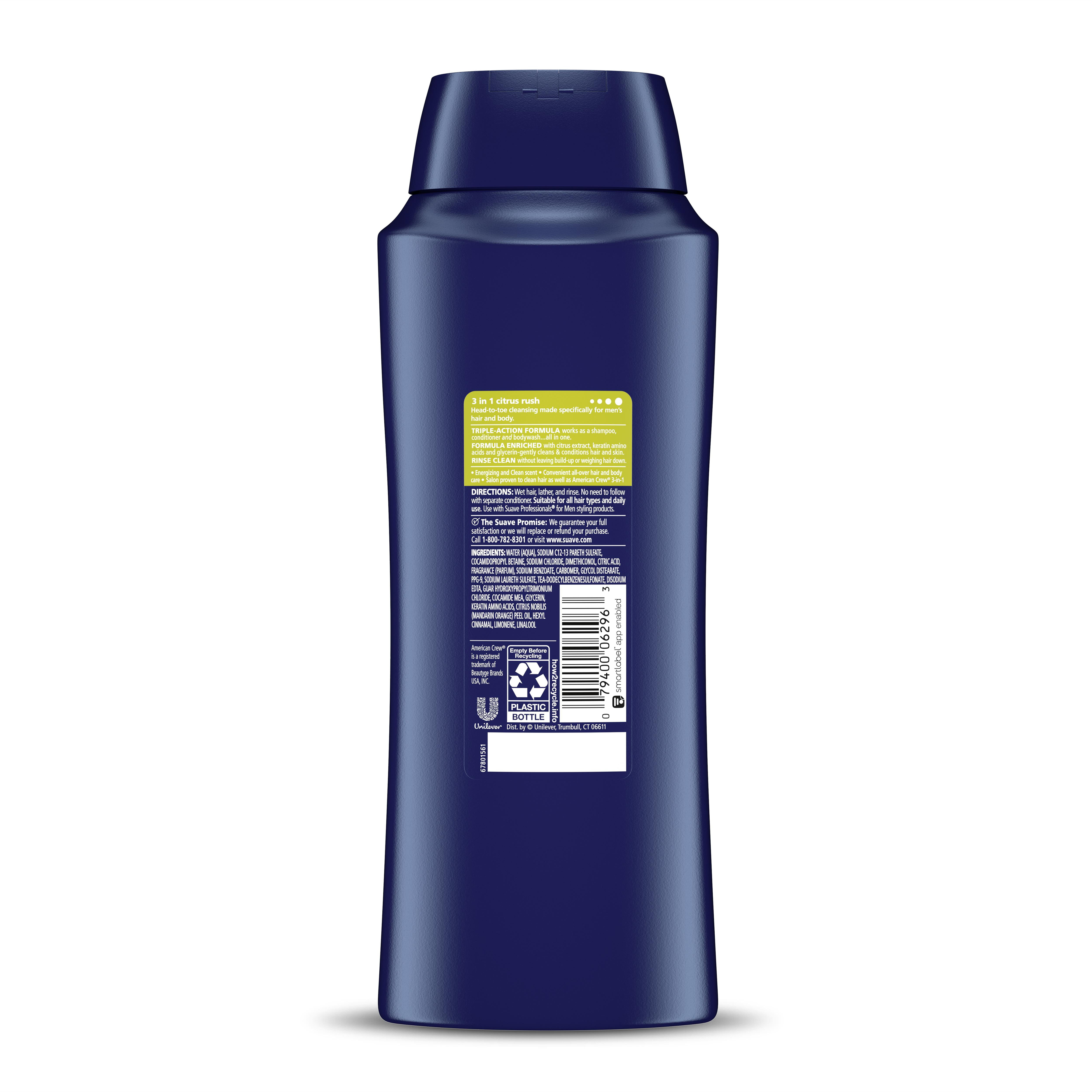 Suave Men 3-in-1 Shampoo Conditioner Body Wash Citrus Rush 28 oz 4 Count