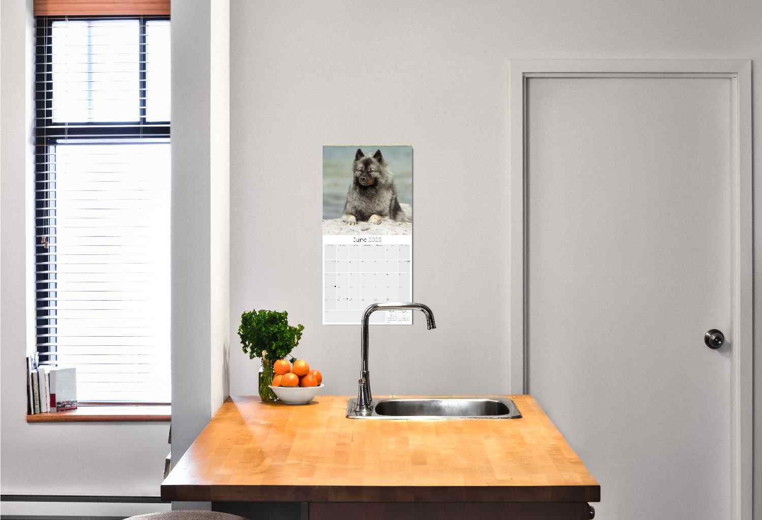 - BONUS SEPT – DEC 22 INCLUDED – Hanging monthly wall calendar from SEPTEMBER 2022 – DEC 2023. A square calendar of beautiful Keeshonds is ideal for creating a comfortable look in home & office. Size Closed: 12 W x 24 H, Size Opened: 12 W x 24 H.