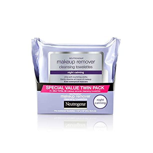 - 25-count of soft, pre-moistened Neutrogena Makeup Remover Night Calming Cleansing Towelettes to gently cleanse skin and remove makeup at the end of the day